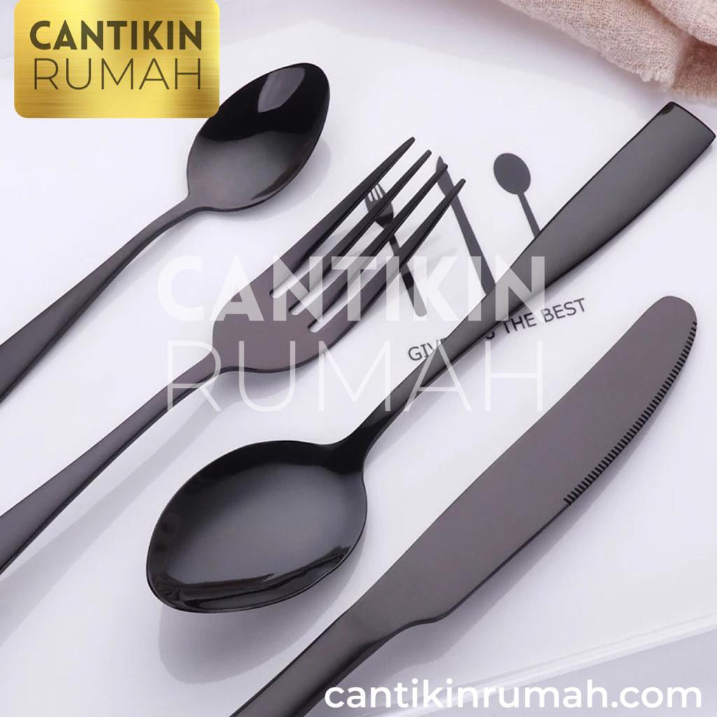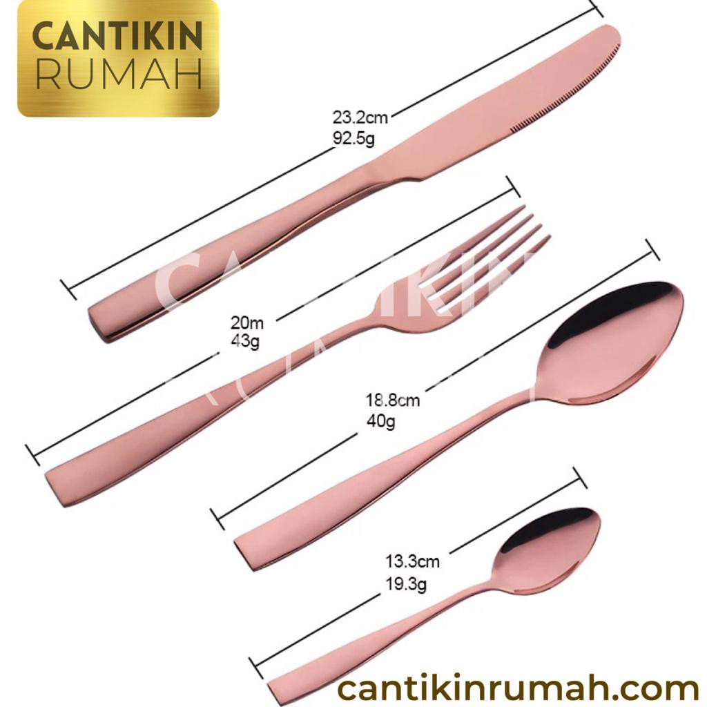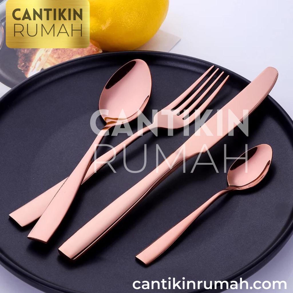 SET ALAT MAKAN STAINLESS STEEL CUTLERY TITANIUM PLATING SENDOK GARPU PISAU ROSE GOLD SILVER BLAC
