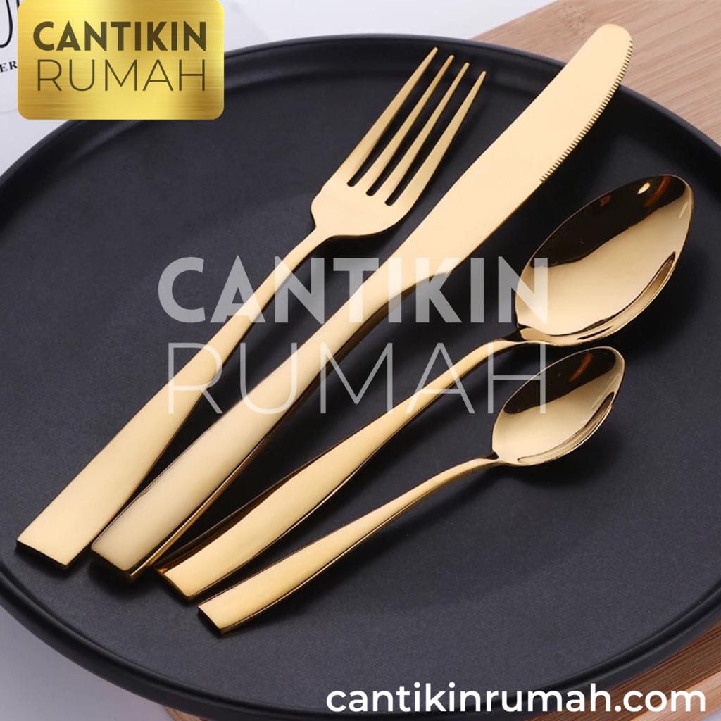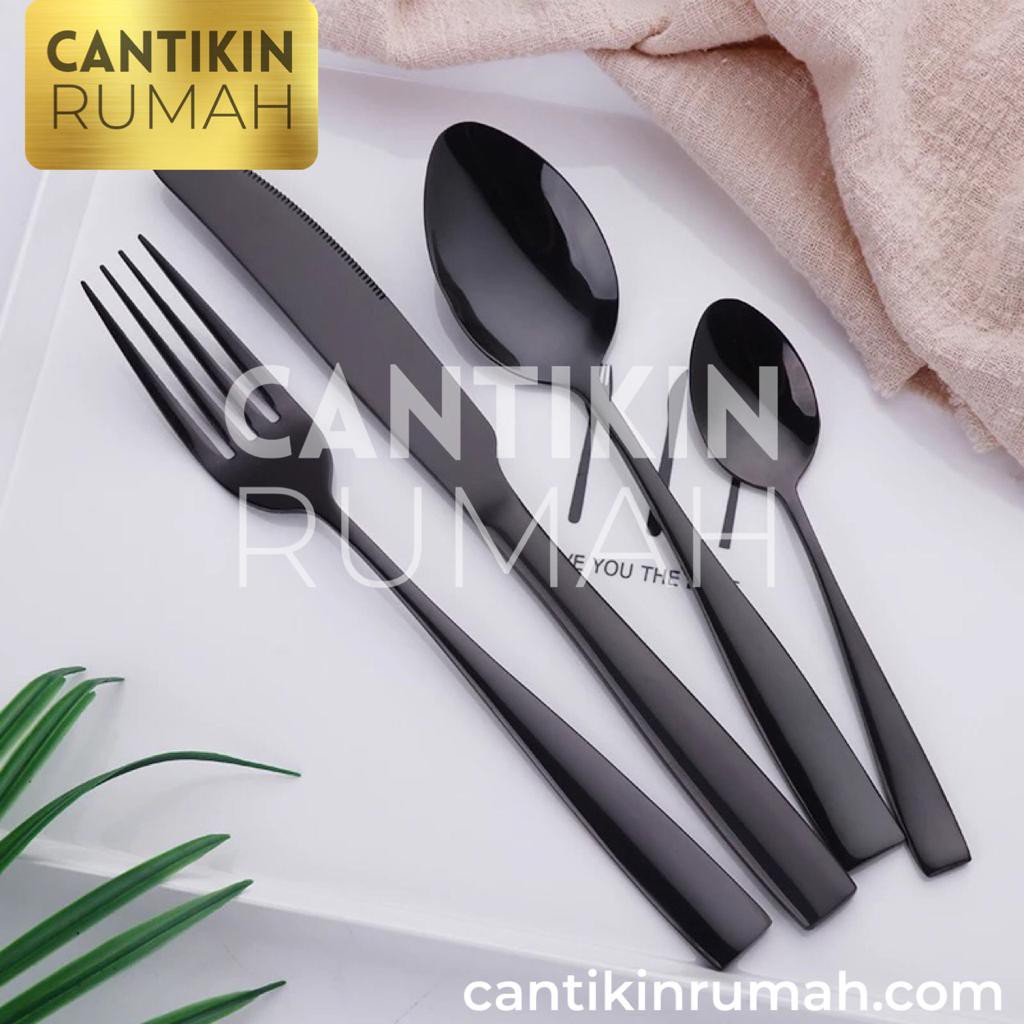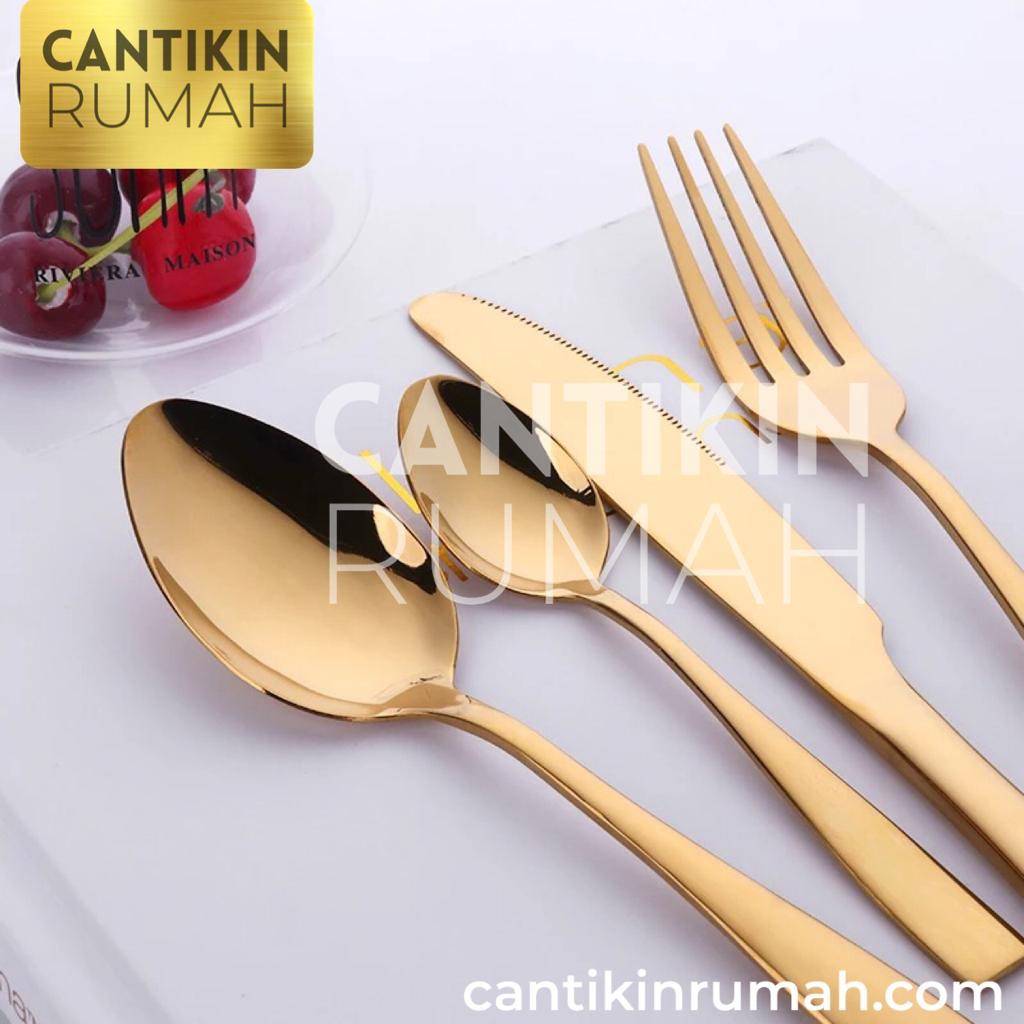 SET ALAT MAKAN STAINLESS STEEL CUTLERY TITANIUM PLATING SENDOK GARPU PISAU ROSE GOLD SILVER BLAC