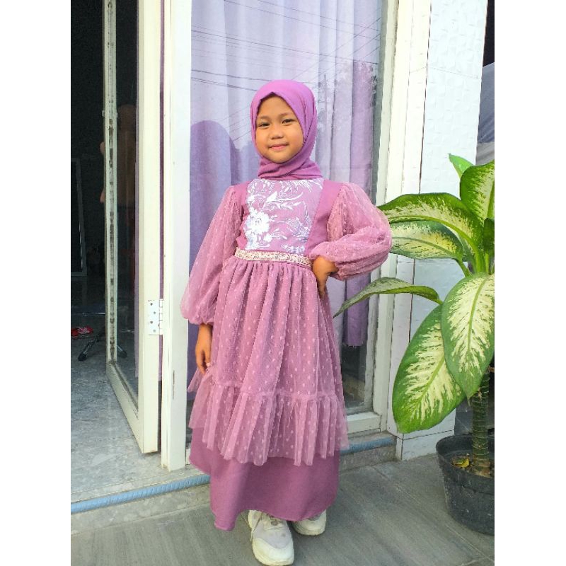 SET GAMIS ANAK/GAMIS ANAK TILE/GAUN PESTA/GAMIS BROKAT/TILE DOT
