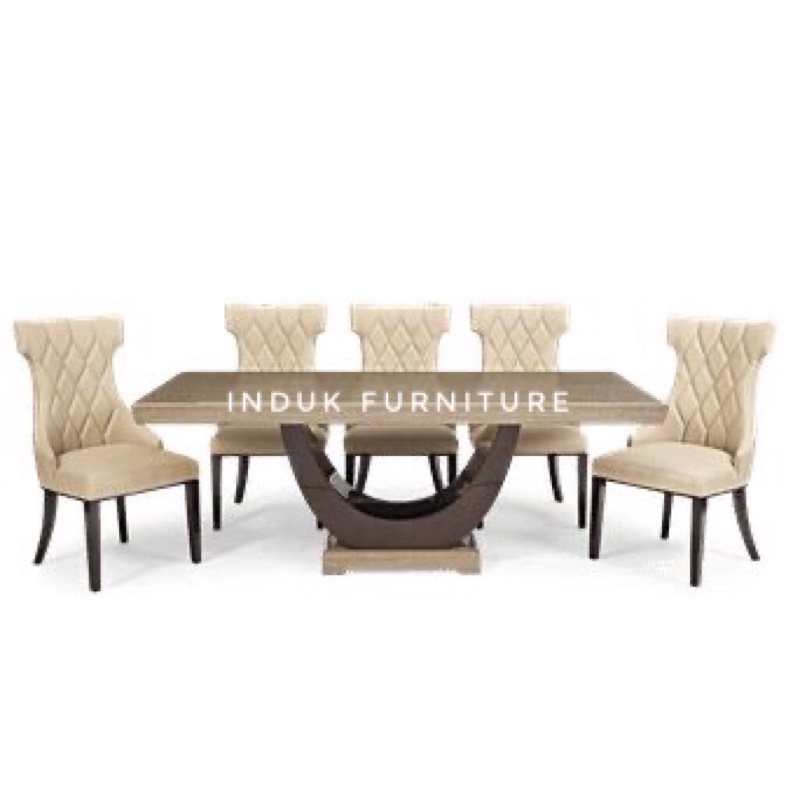 SET MEJA MAKAN VINTAGE MODERN 8 KURSI TOP MEJA (pesanan pribadi harga DP )