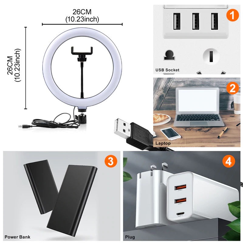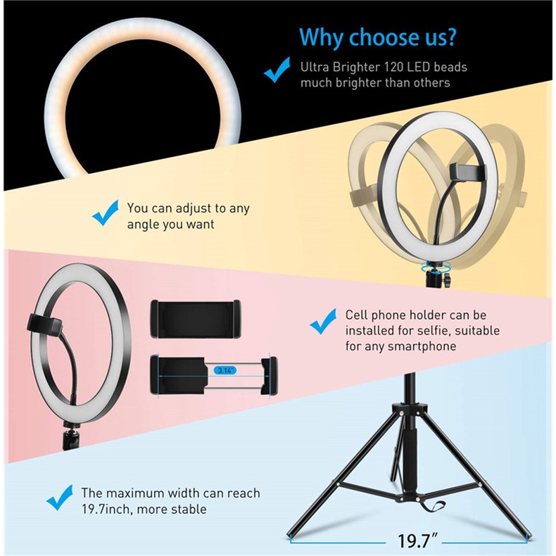 SET RING LIGHT 26 CM + STAND RINGLIGHT 26CM LAMPU TRIPOD SELFIE MAKE UP VLOG RING LIGHT 10 INCH LAMPU MAKEUP