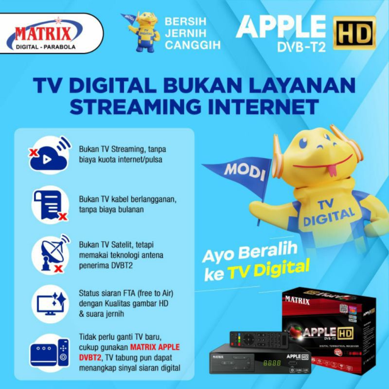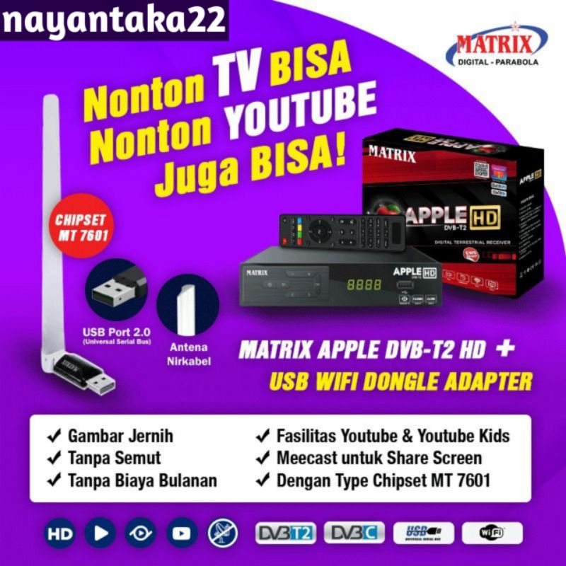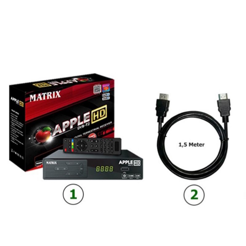 SET TOP BOX MATRIK APPLE MERAH FULL HD DVB T2 & C LENGKAP HDMI USB DONGLE WIFI, STB TV DIGITAL MATRIX MURAH7
