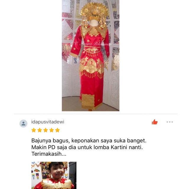SET baju adat minang padang & sunting mewah no.1 pakaian tradisional anak TK SD tari kartini karnaval pawai