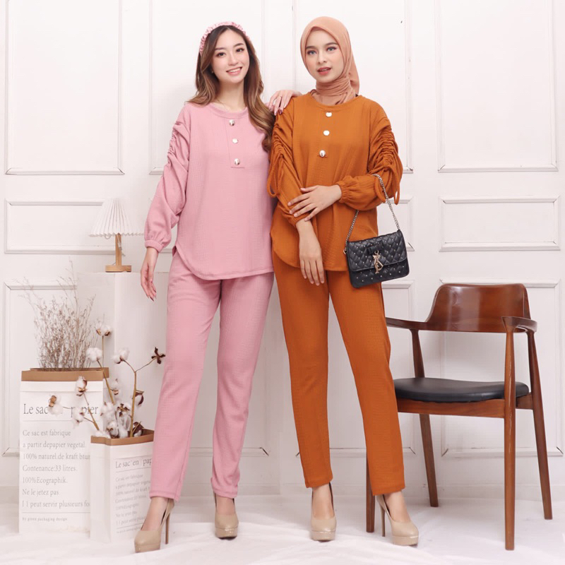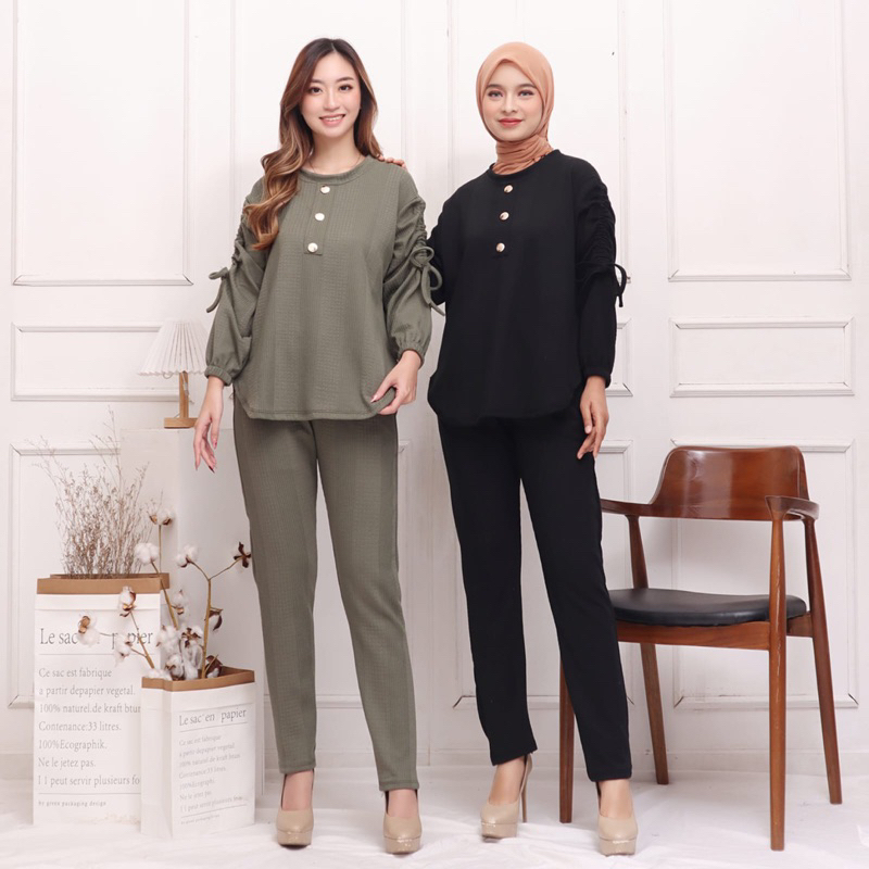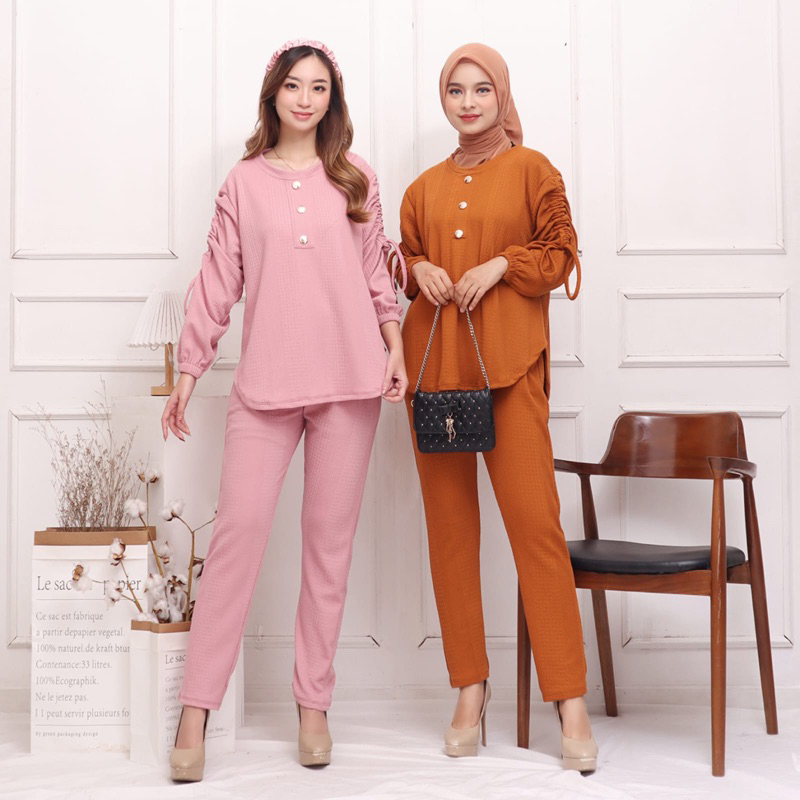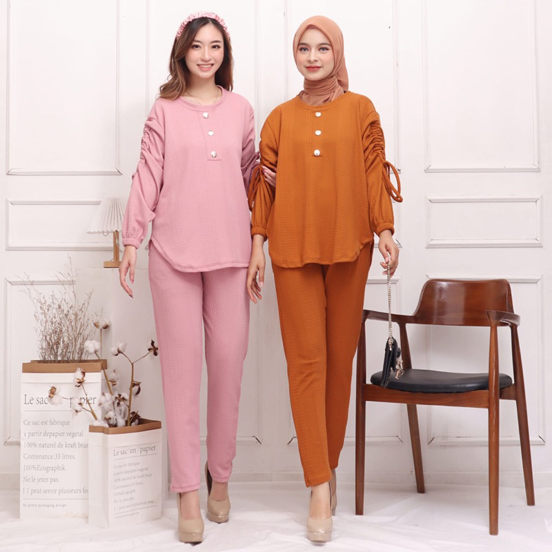 SETCEL RAJUT KNIT TANGAN SERUT MODEL KANCING JOY 01