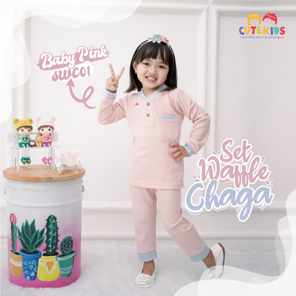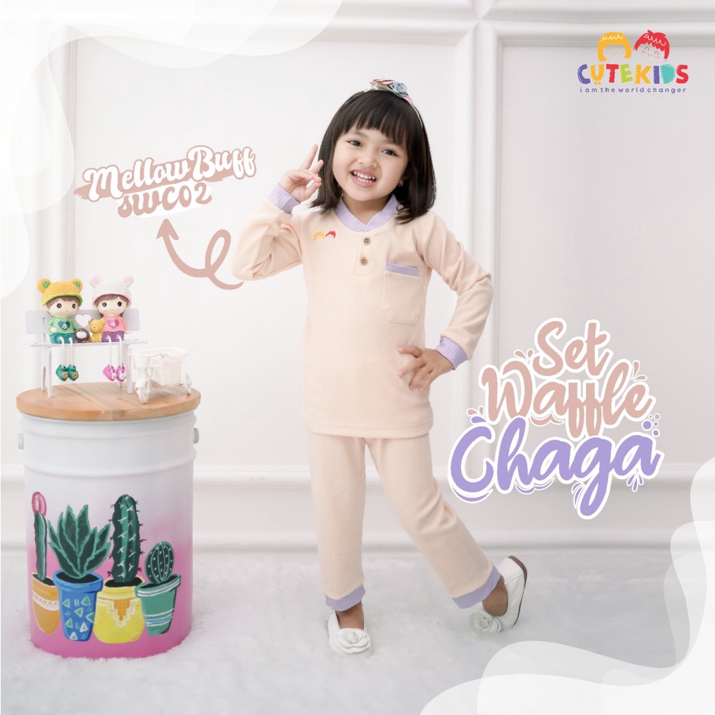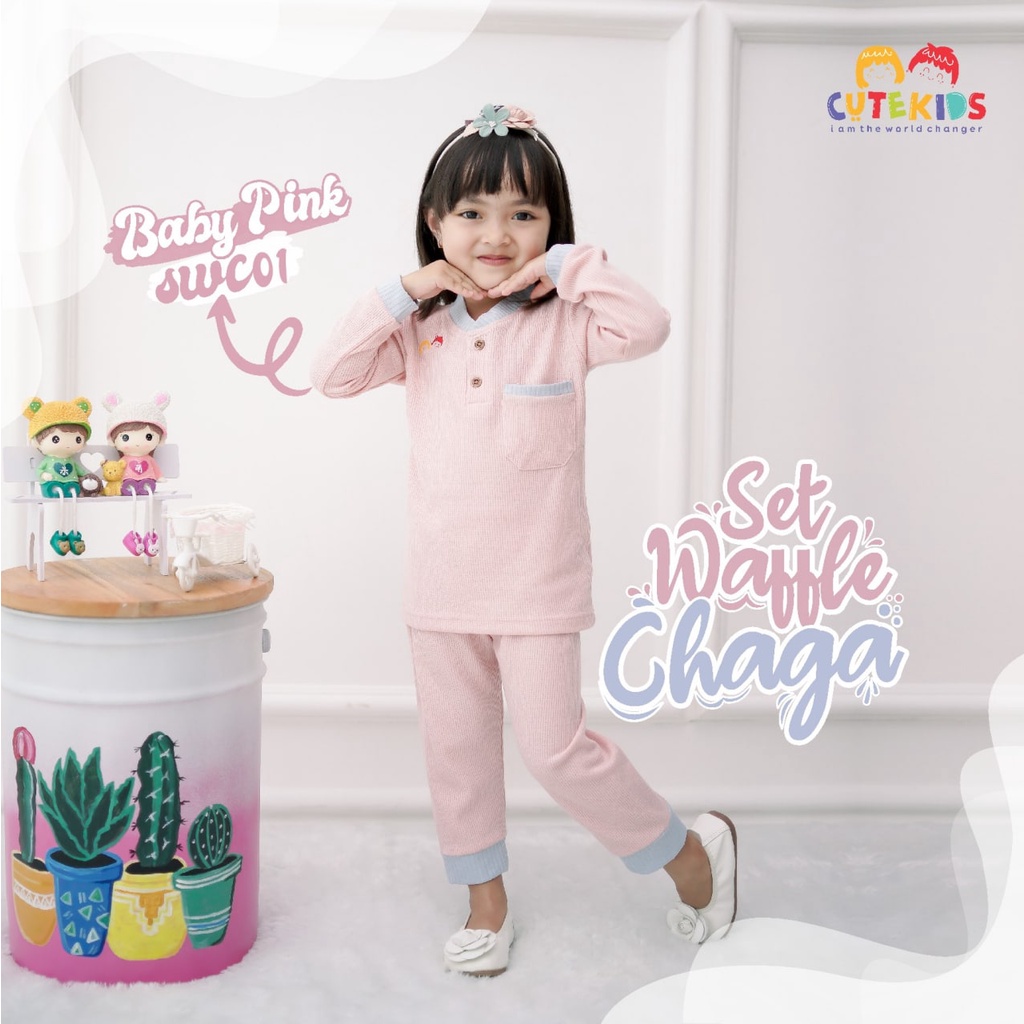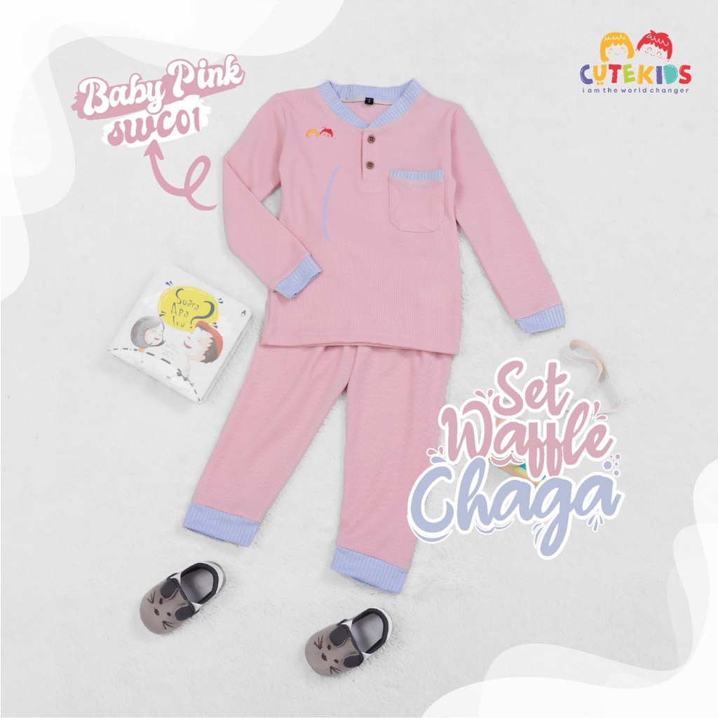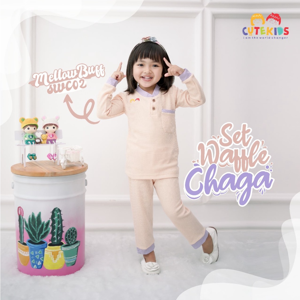 SETELAN BAJU ANAK CEWE SET WAFFLE CHAGA CUTEKIDS