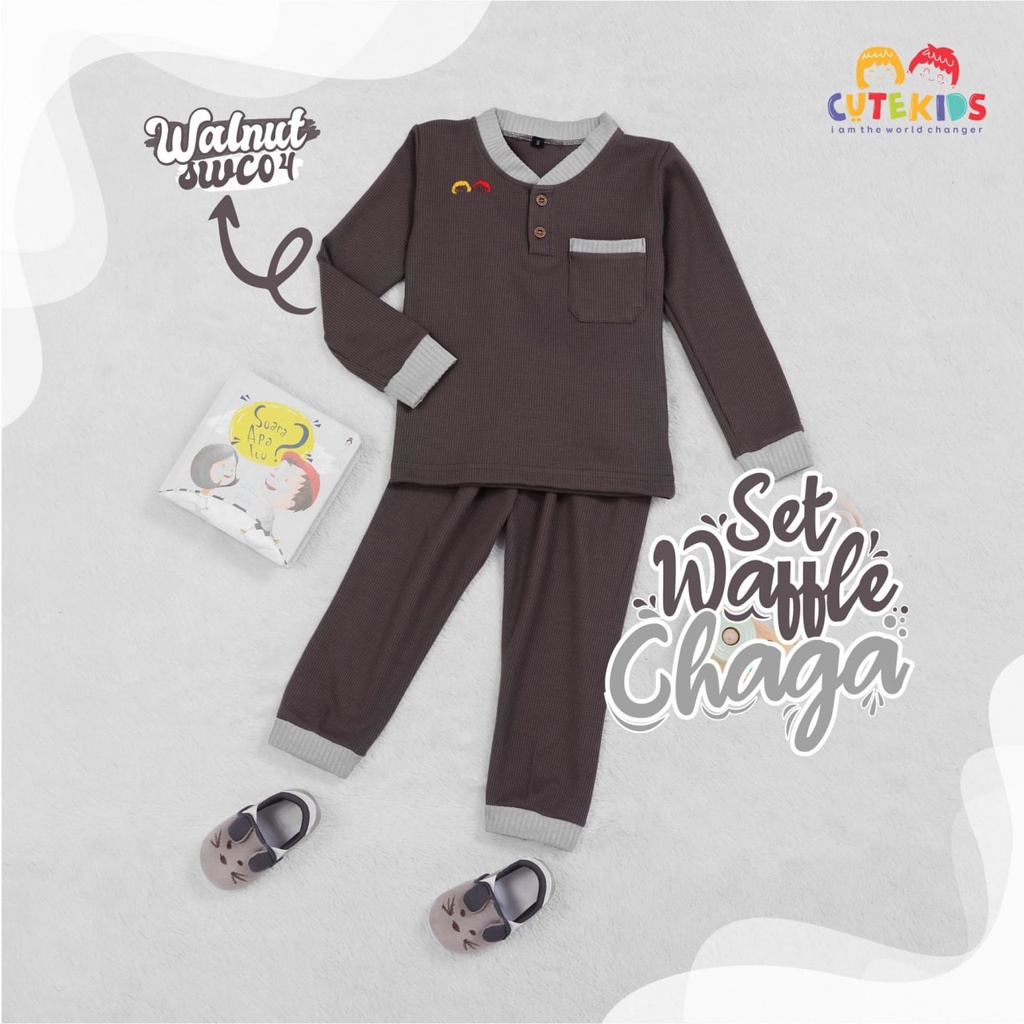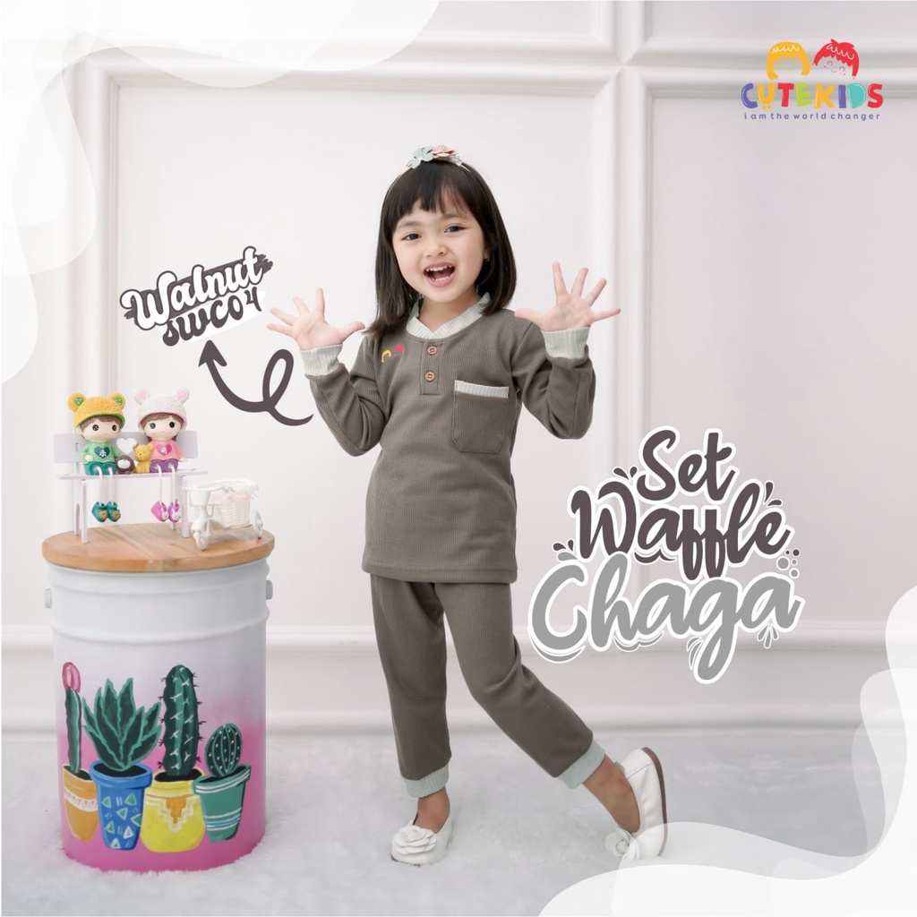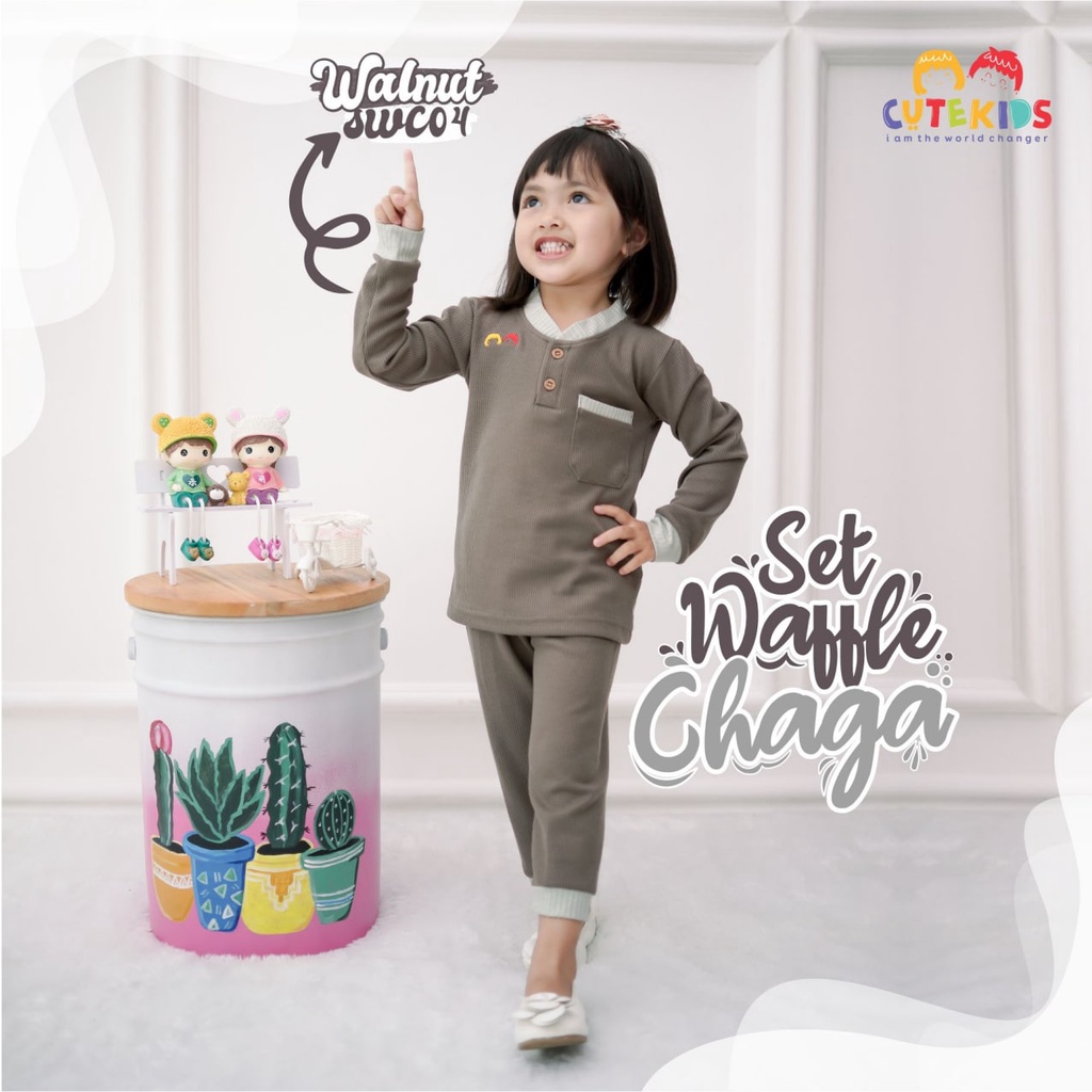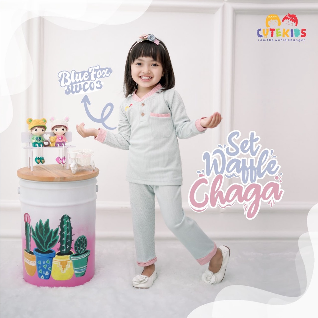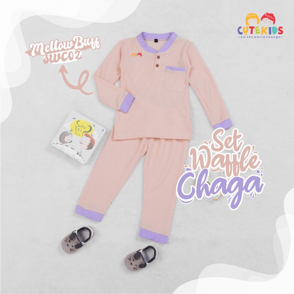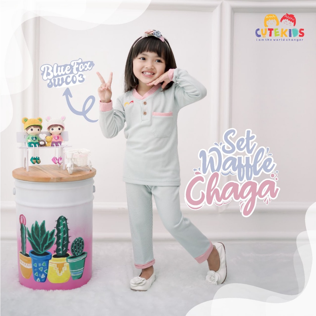 SETELAN BAJU ANAK CEWE SET WAFFLE CHAGA CUTEKIDS