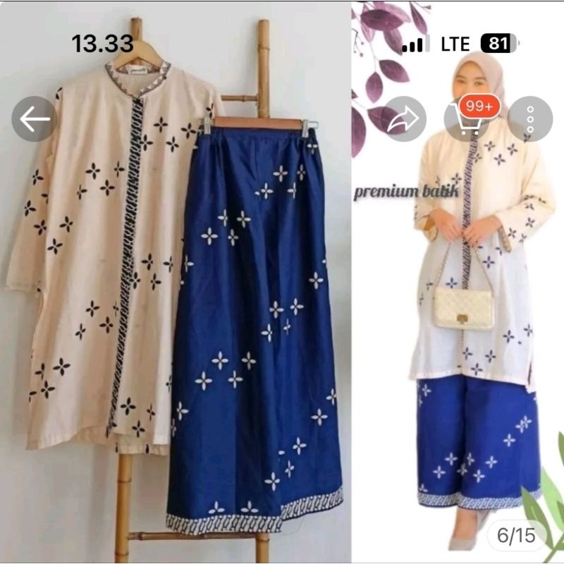 SETELAN BATIK PUTIH MENTARI TUNIK BATIK 17 AGUSTUS MERAH PUTIH KULOT BATIK