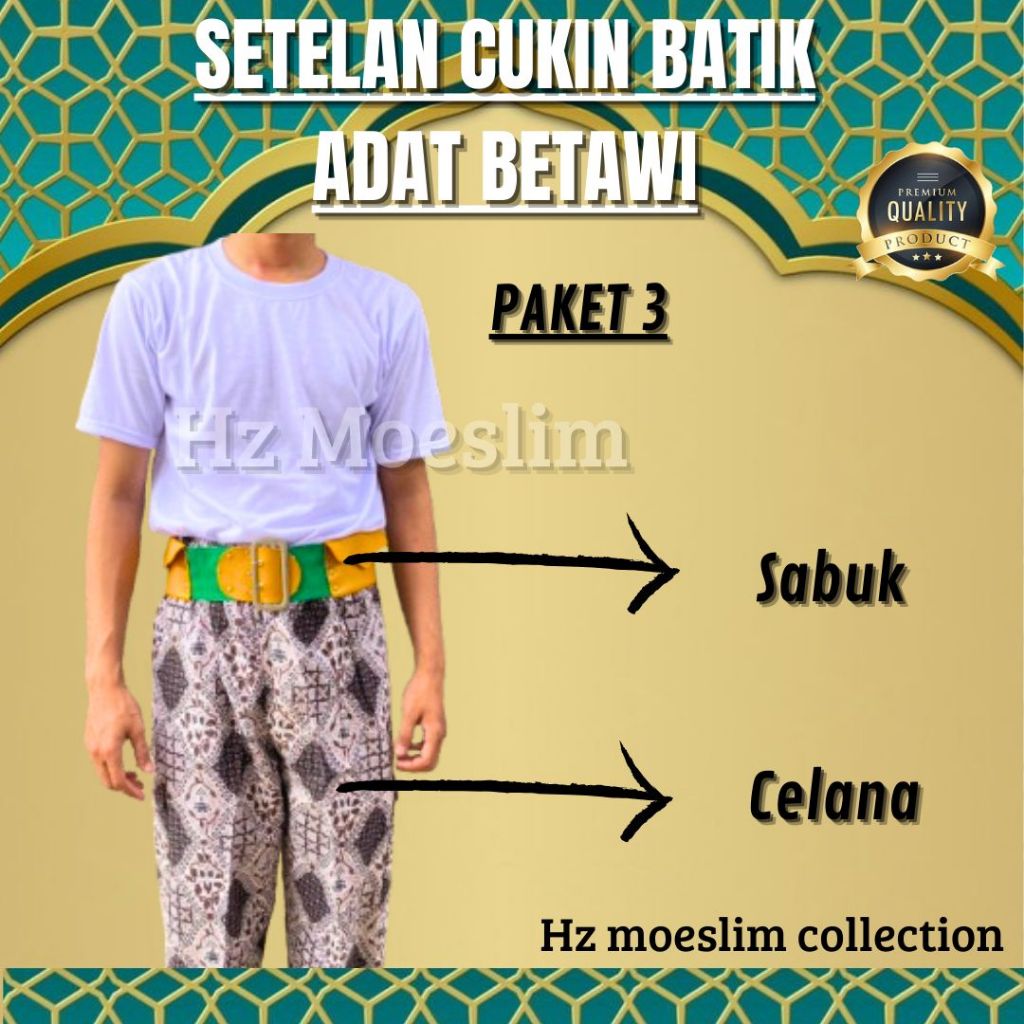 SETELAN CELANA BATIK BOIM ANAK SAMPAI DEWASA LENGKAP I BAJU ADAT BETAWI I SELENDANG BATIK Paket A