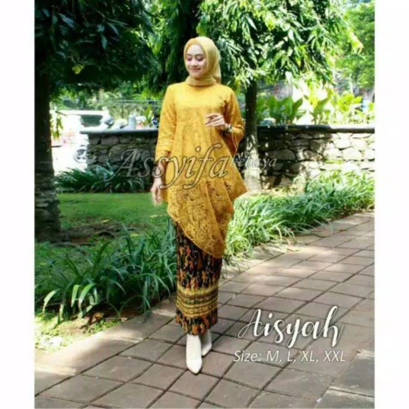 SETELAN KEBAYA TUNIK / KEBAYA MODERN / TUNIK BRUKAT MODERN /KEBAYA TUNIK MIRING