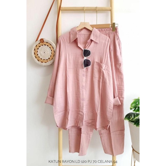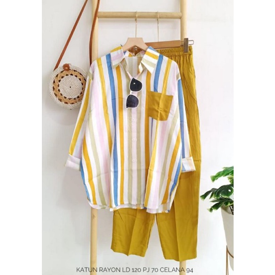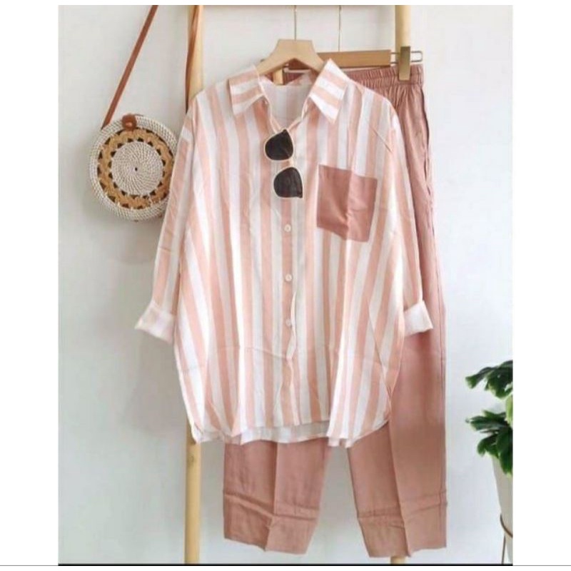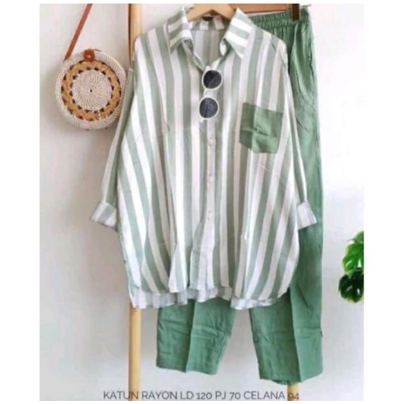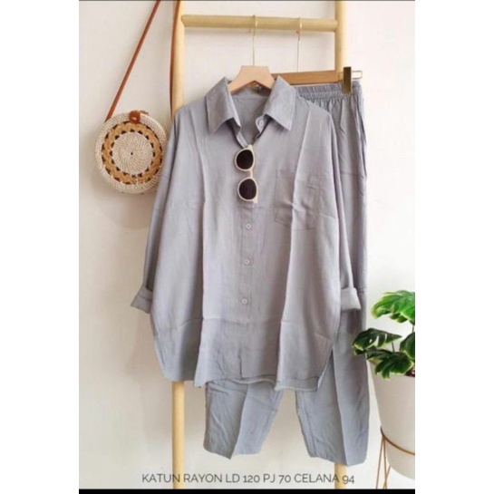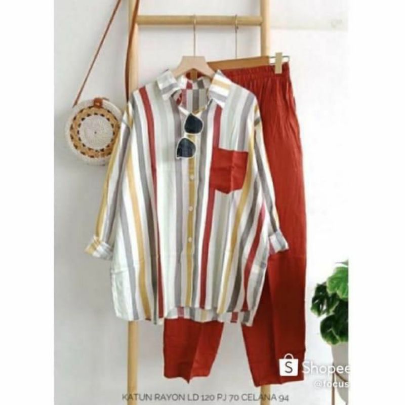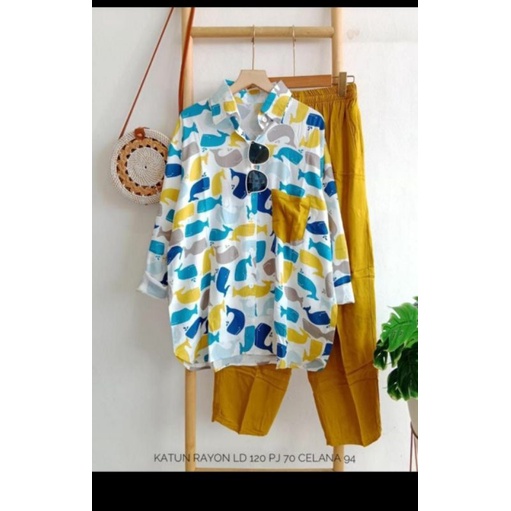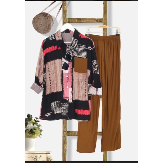 SETELAN KEMEJA WANITA MOTIF KEKINIAN / SETELAN RAYON PREMIUM HQ / SETCEL JUMBO / ONESET DAILY