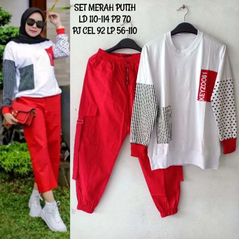 SETELAN OLAHRAGA // SET COMBED // SET SPORTY // SET MERAH PUTIH // MERDEKA // Setelan wanita merah putih