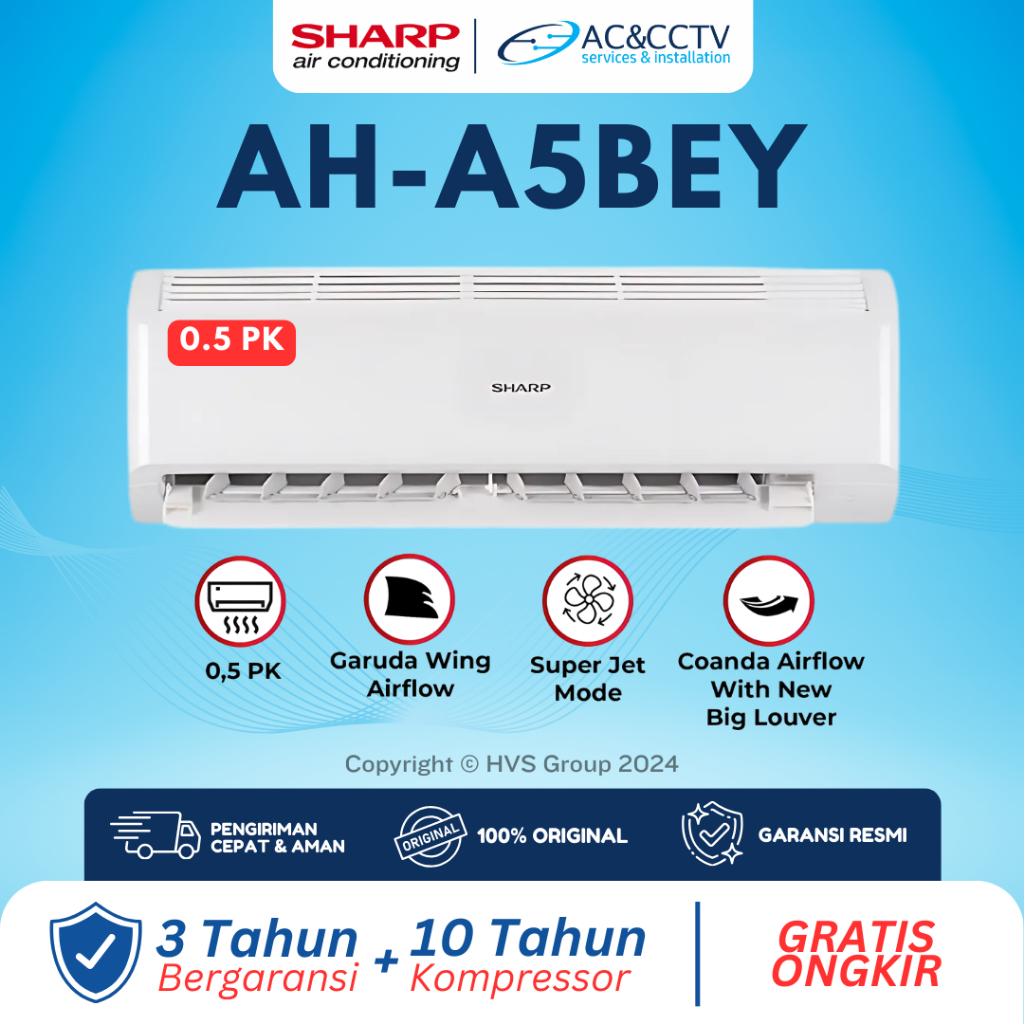 SHARP AC AH-A5BEY 0.5 PK Air Conditioner 360Watt Garuda Series Wing Airflow