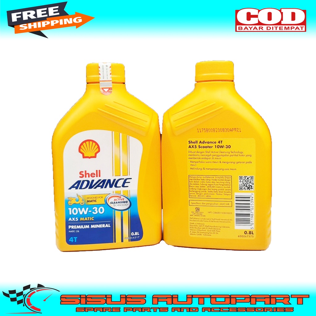 SHELL ADVANCE AX5 10W30 0.8 L UNTUK MOTOR MATIC / OLI SHELL MOTOR MATIC