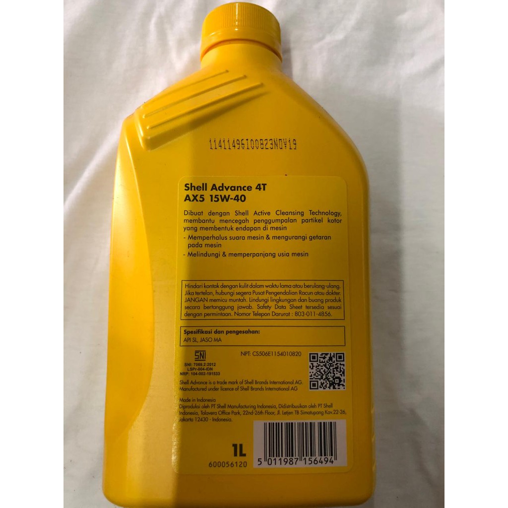 SHELL ADVANCE MOTOR OIL OLI MOTOR MINERAL AX5 15W-40 0.8 Liter 800 mL