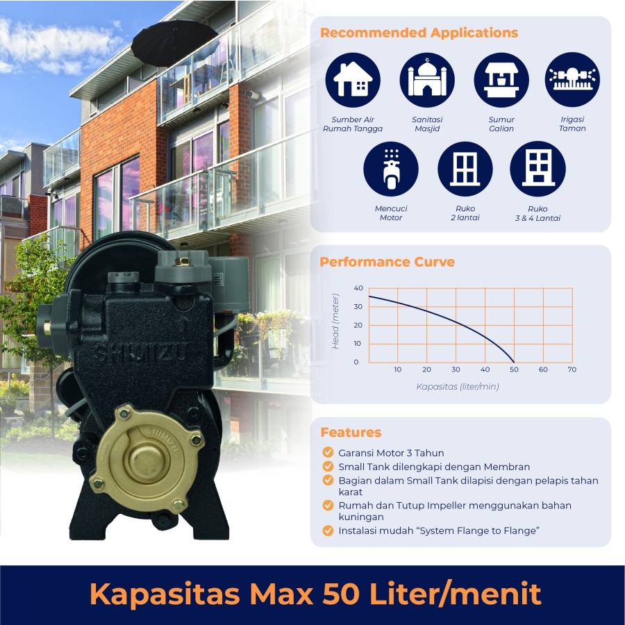 SHIMIZU POMPA AIR PS 230BIT / automatic pum/Pompa air 230bit/PS230BIT/PS230 BIT/PS 230BIT/PS 230 BIT/PS-230BIT/PS-230 BIT/POMPA SUMUR DANGKAL OTOMATIS/POMPA DAYA HISAP MAKSIMAL 9 METER/ORIGINAL SHIMIZU/GARANSI RESMI