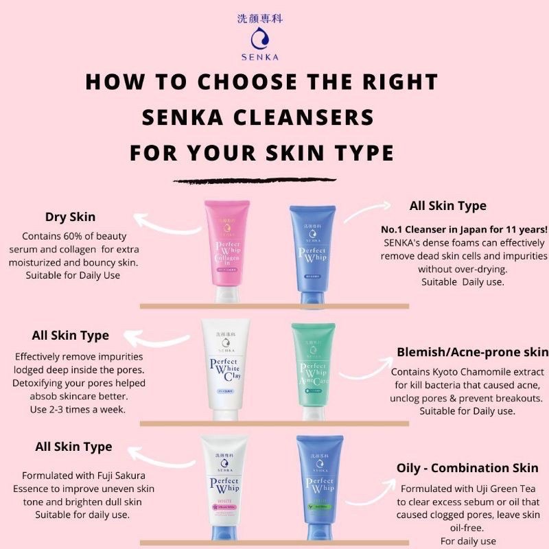 [BPOM] SENKA Facial Foam 120g Perfect Whip /White Clay / Whip White /Whip Fresh /Acne Care /Collagen/Gel Gentle Wash