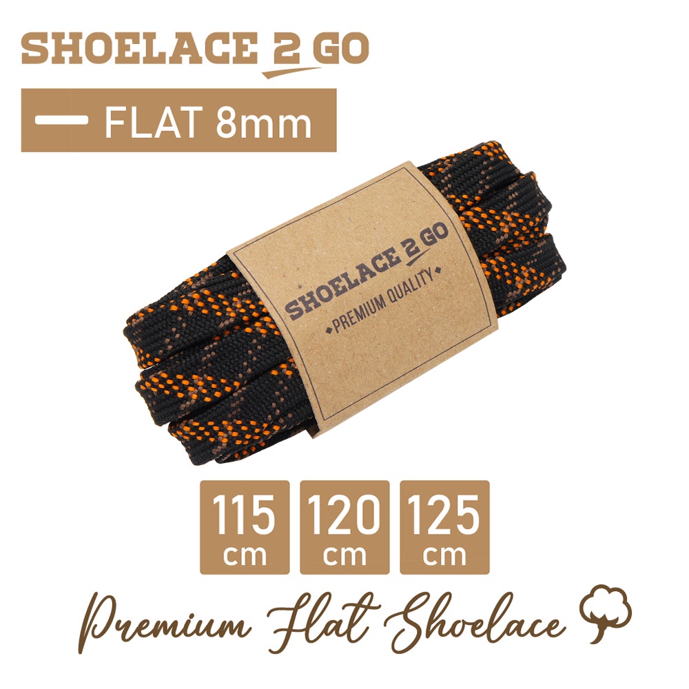 SHOELACE 2 GO PREMIUM TALI SEPATU MOTIF GEPENG PIPIH FLAT - N16 BLACK ORANGE - 115CM 120CM 125CM