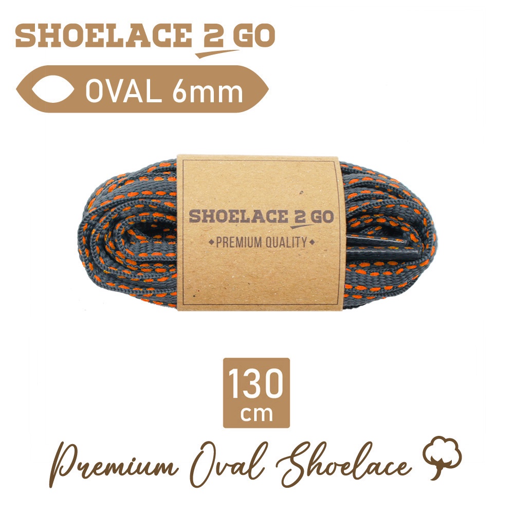 SHOELACE 2 GO PREMIUM TALI SEPATU MOTIF LONJONG OVAL N3A - GREY ORANGE - 130CM