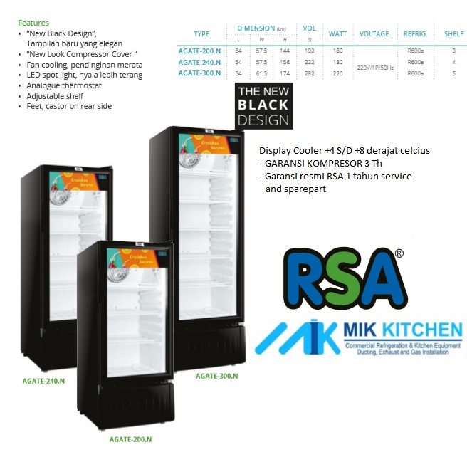 Kullkas SHOWCASE Chiller 3 Rak RSA AGATE-200 - AGATE 200 kulkas