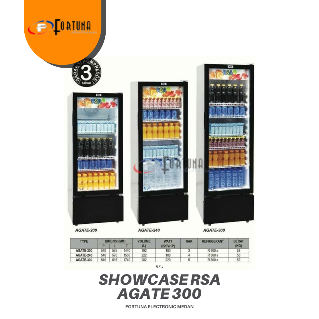 SHOWCASE MINUMAN RSA AGATE 300 282 LITER DISPLAY CHILLER MEDAN
