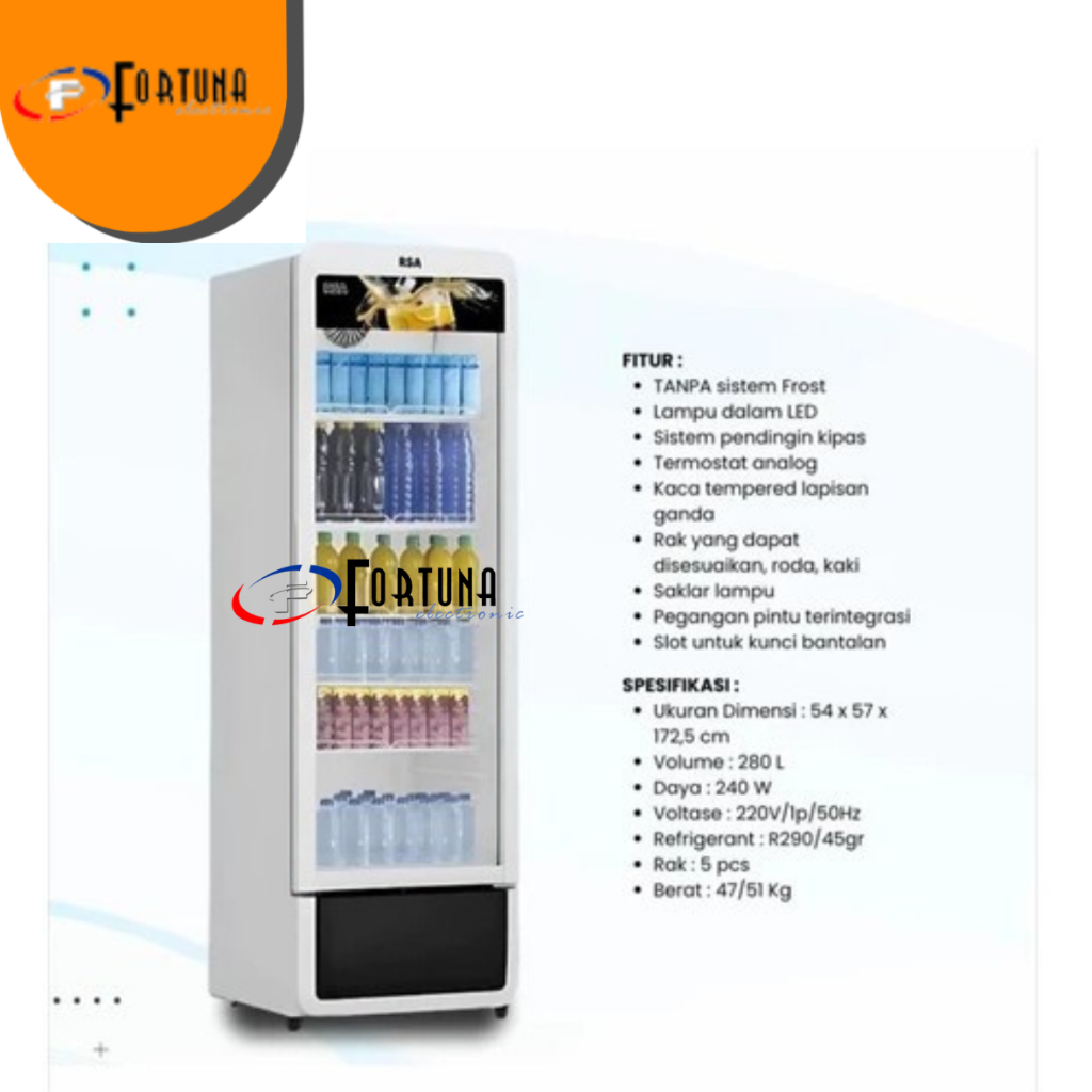 SHOWCASE RSA 280 LITER RUBY 280 / RUBY 240 / RUBY 200 KULKAS PENDINGIN MINUMAN JUMBO 5 RAK GARANSI RESMI