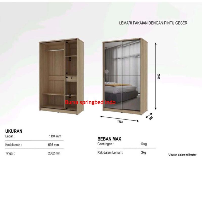 SIENA lemari pakaian lemari baju 2 pintu sliding full kaca minimalis