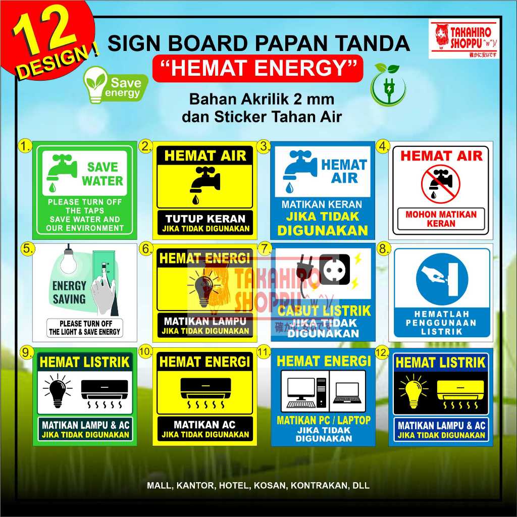 SIGN BOARD AKRILIK / STIKER TANDA HEMAT ENERGI / HEMAT LISTRIK / HEMAT AIR / MATIKAN KERAN / MATIKAN LAMPU / MATIKAN LISTRIK / SAVE ENERGY