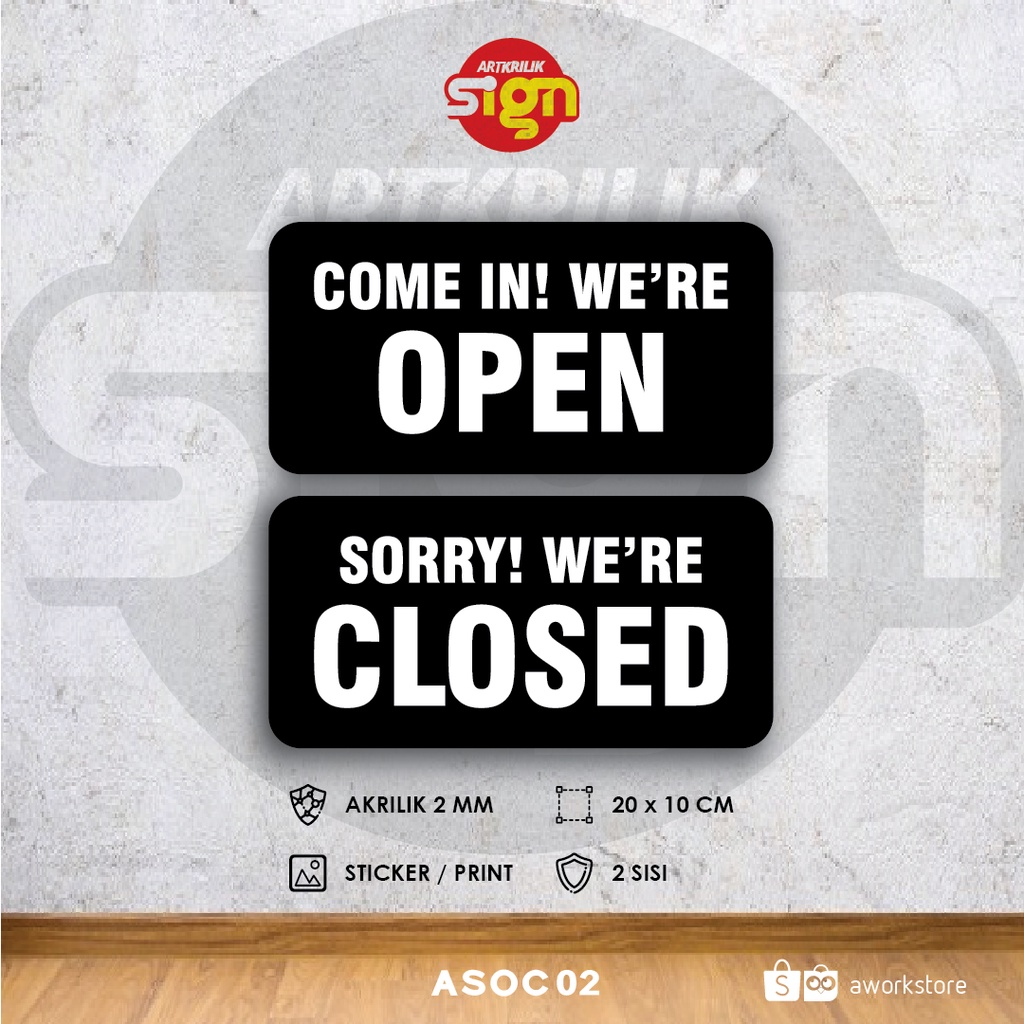 Artkrilik - SIGN LABEL BUKA TUTUP SIGN BOARD ACRYLIC BOLAK BALIK HANGING 20 x 10 cm - Aesthetic