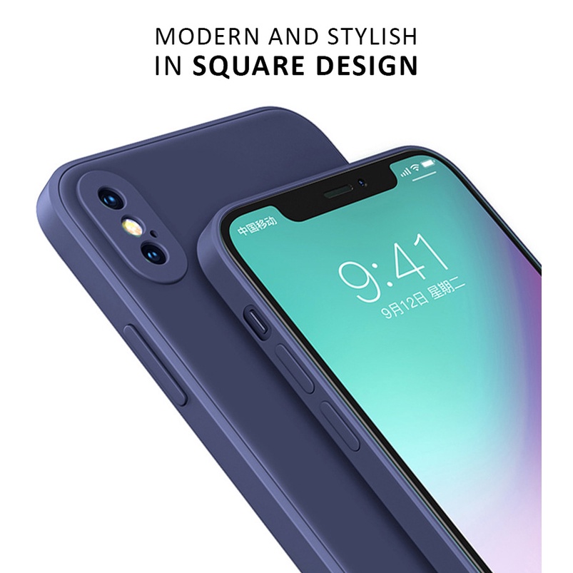 Silicone Square Edge Soft Case iPhone 7 8 Plus X XR XS 11 12 13 Pro Max SE 2020 Casing Silikon Flat Side mirip iP 12 Matte Lens Cover dengan Lapisan Kain Beludru dan Logo [Page Dark Green]