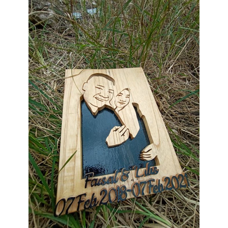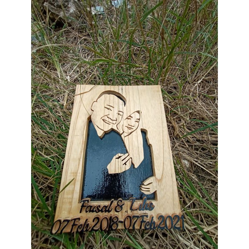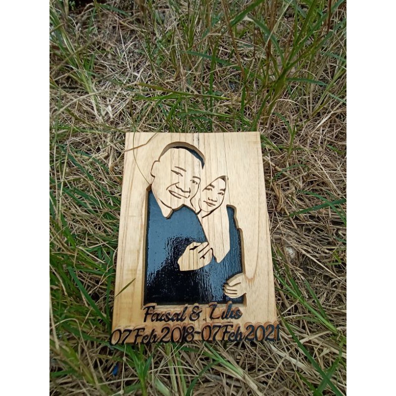 SILUET UKIRAN WAJAH KAYU KADO HADIAH WEDDING ANNIVERSARY BIRTHDAY GRADUATION DAY