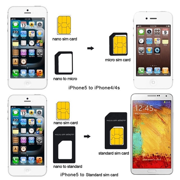 SIM Card Adapter 4 In 1 Micro Sim Card Nano Adapter Sim Adaptor for Smart Phone / Adapter Sim Card Nossy