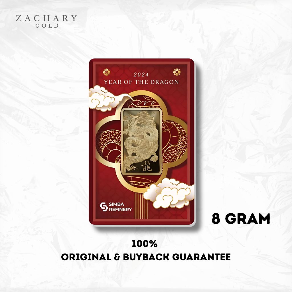 SIMBA Logam Mulia Emas 8 Gram Naga Dragon LM Batangan Sertifikat Fine Gold 99.99% 24 Karat 999.9