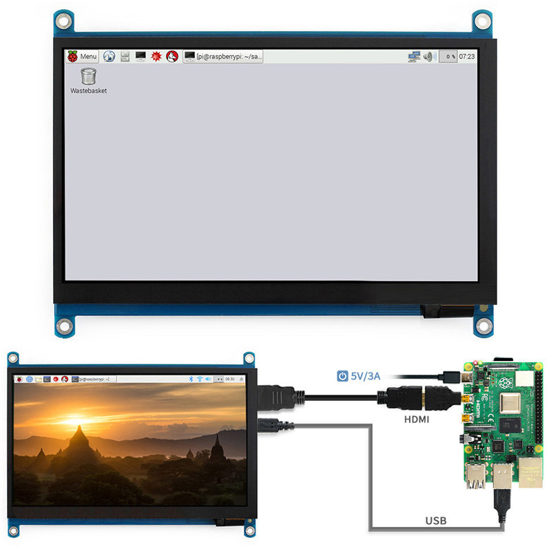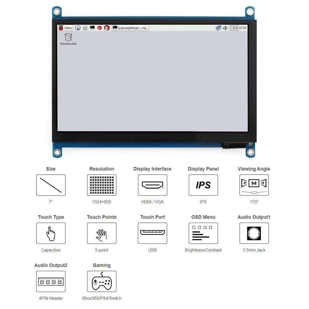 SINARJAYYA Raspberry Pi 7inch HDMI LCD (H) Display Capacitive Touch Screen 1024x600 IPS compatible with HDMI