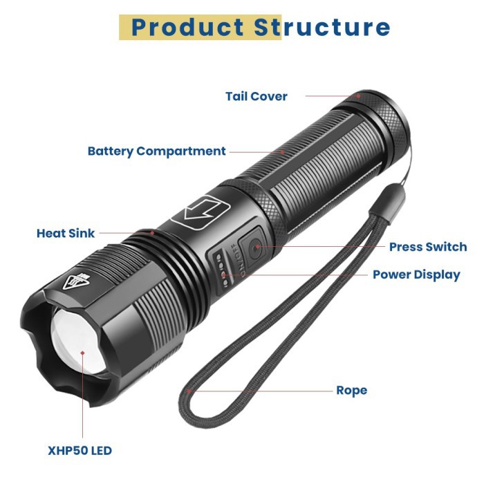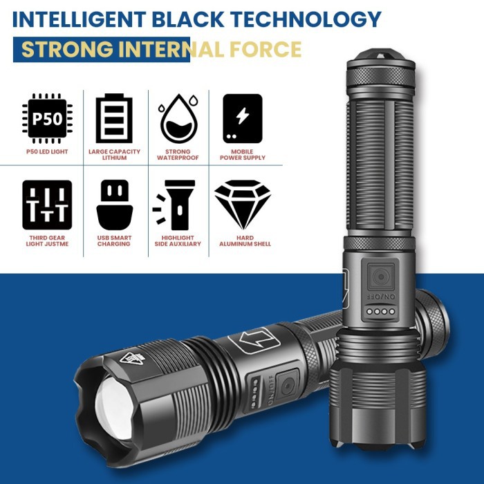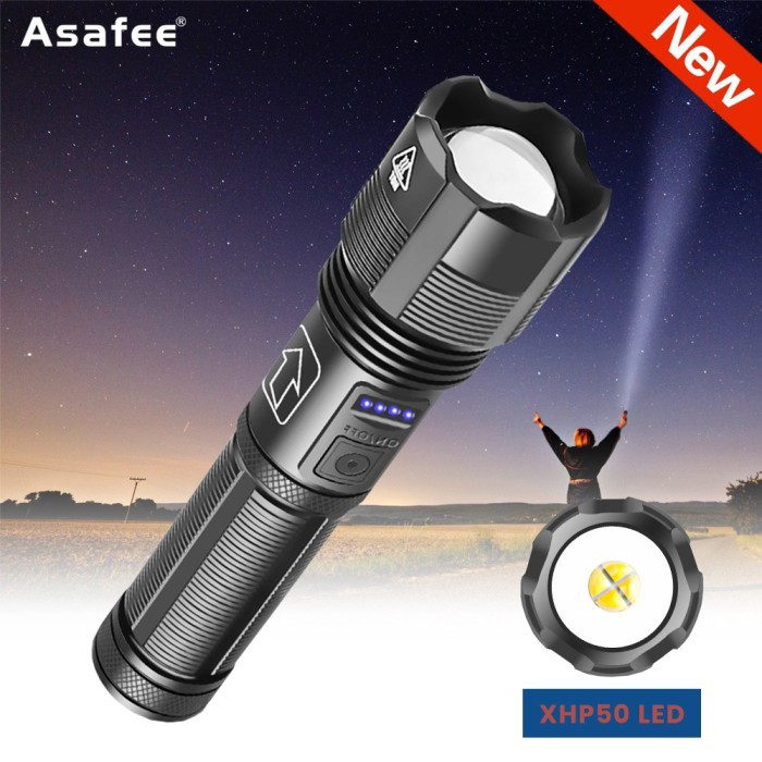SINTE Senter LED XHP50 BLACK SPIDER 5000Lm Zoom XHP Charge USB 18650