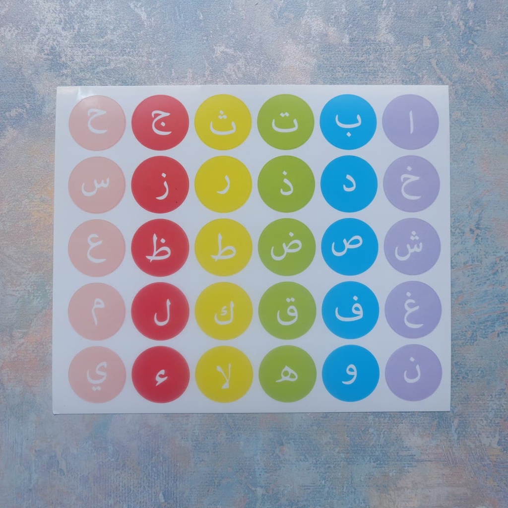 SK STICKER BULAT 30 - Sticker Angka Hijaiyah Huruf Besar Huruf Kecil