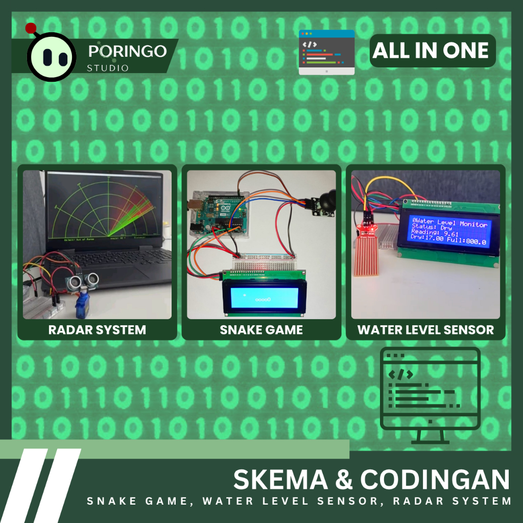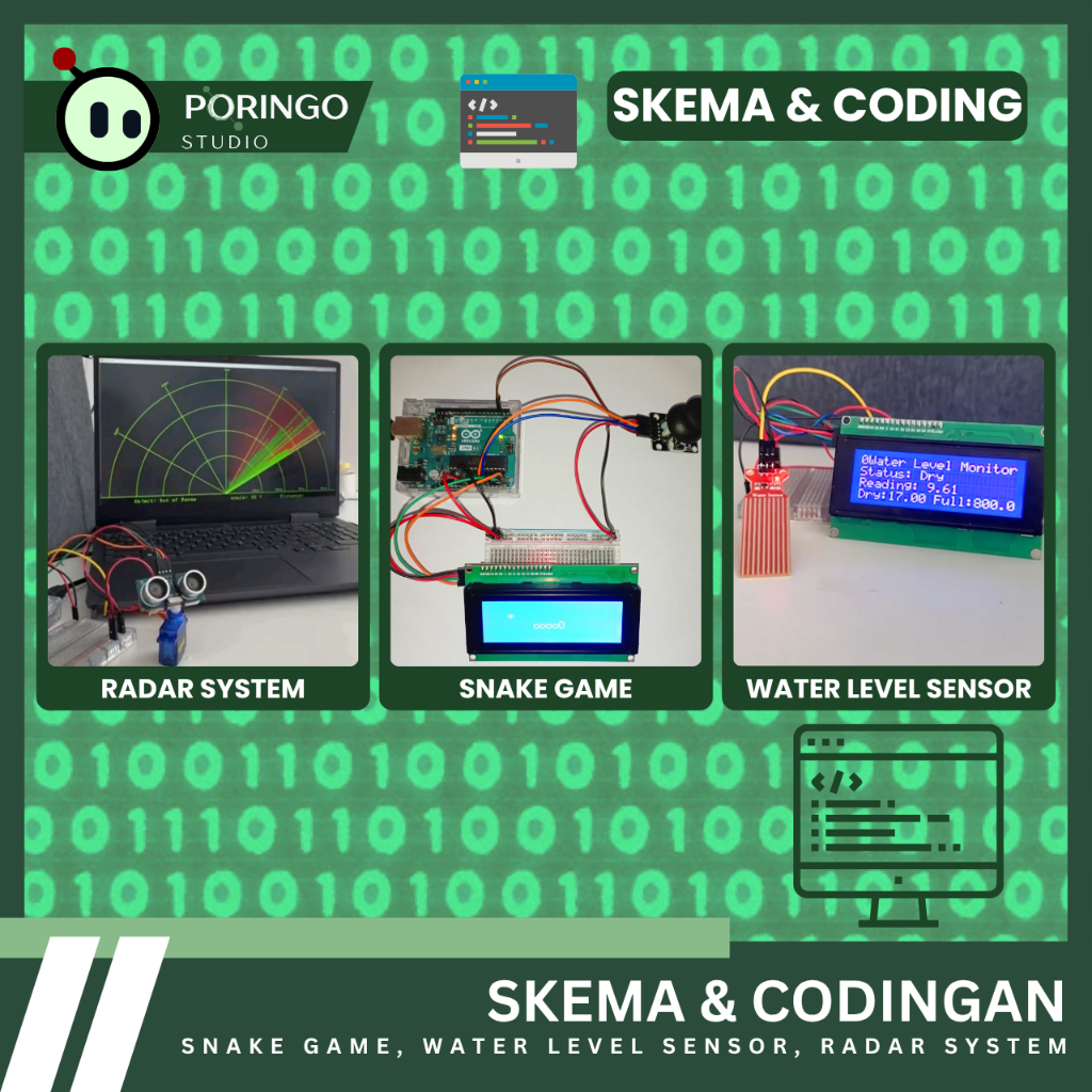 SKEMA & CODINGAN SNAKE GAME, RADAR SYSTEM, WATER LEVEL SENSOR