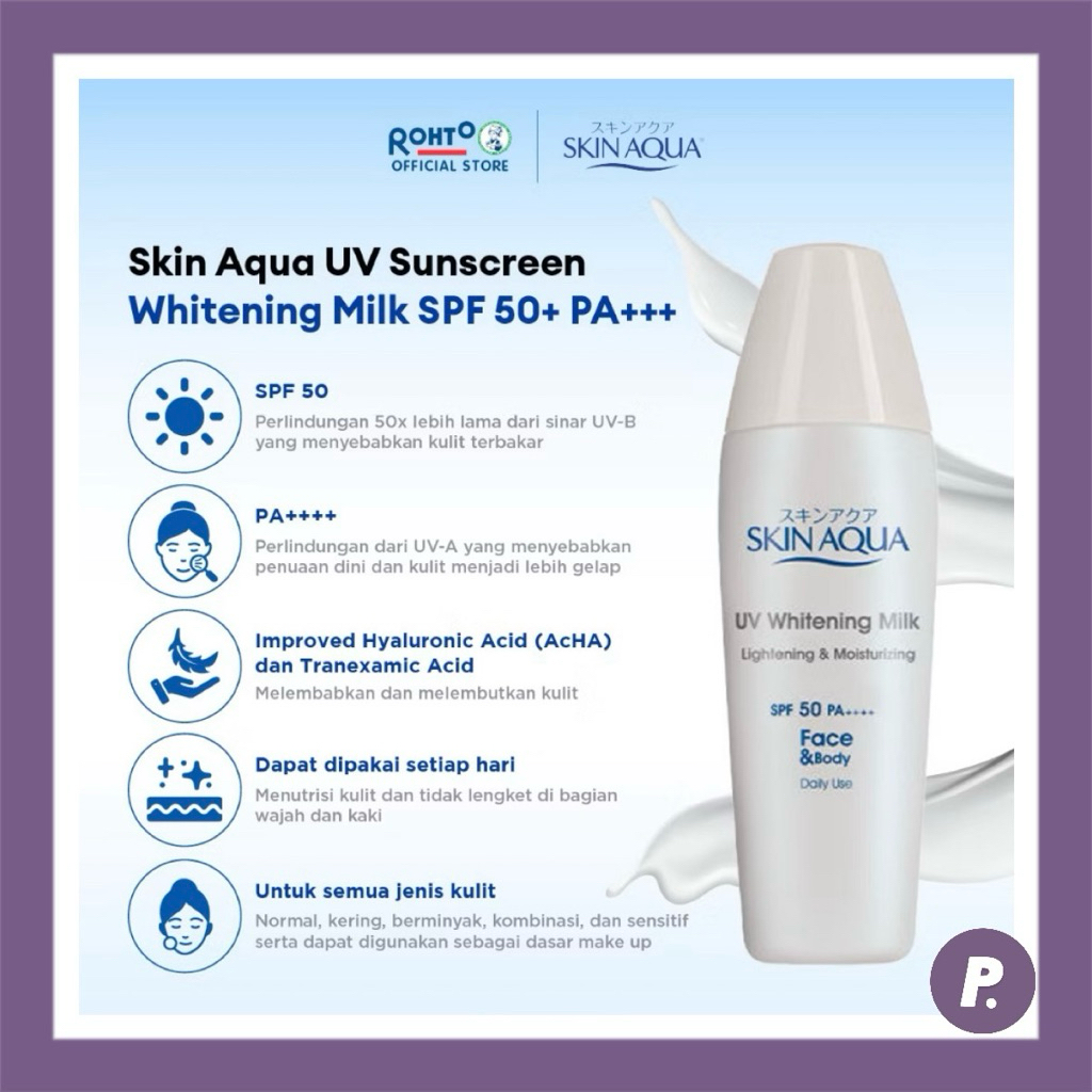 SKIN AQUA UV WHITENING MILK SUNSCREEN SPF 50 PA++++ - 40gr - SKINAQUA PUTIH - SUNBLOK WAJAH - LIGHTENING AND MOISTURIZING - TABIR SURYA MUKA