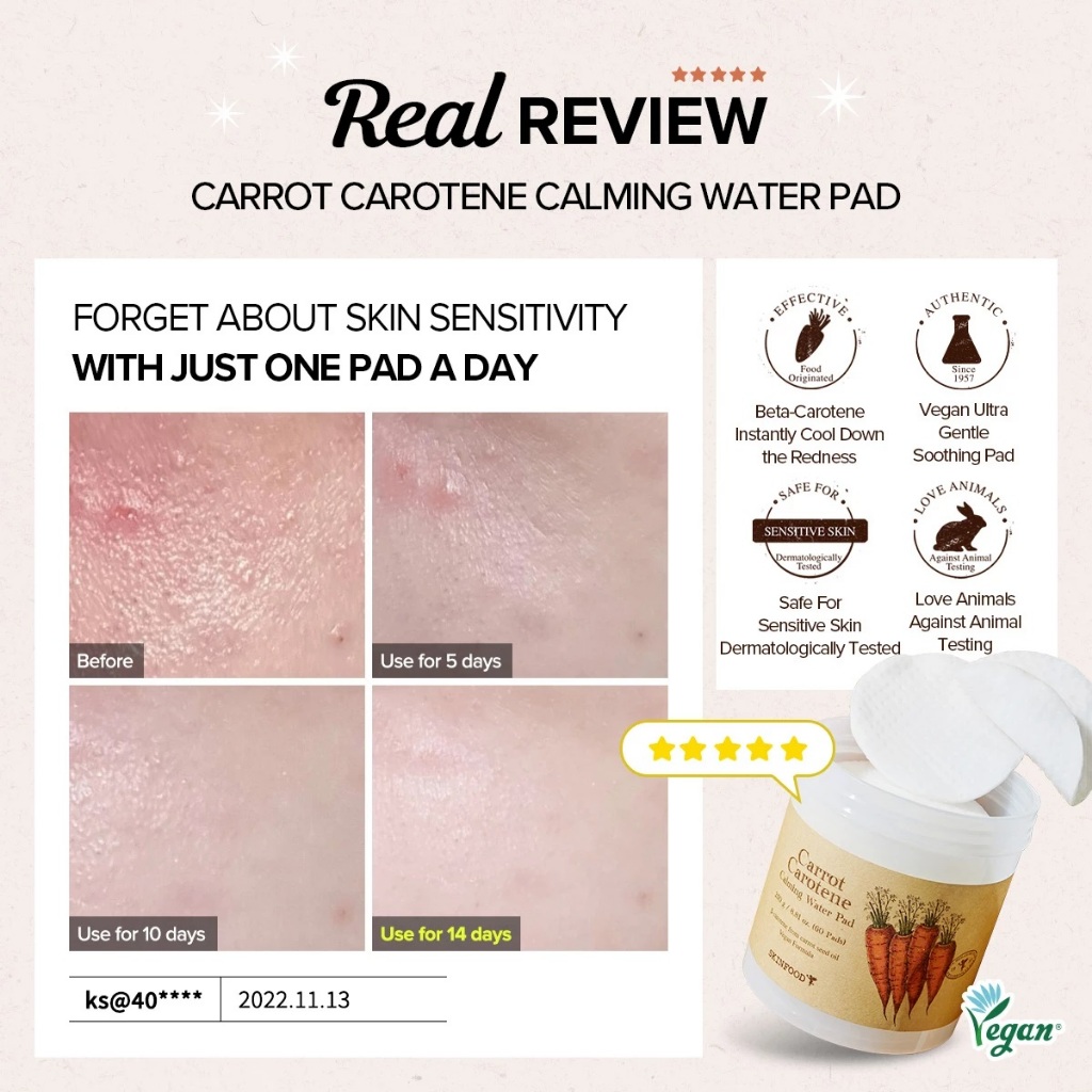 SKINFOOD Carrot Carotene Calming Water Pad Toner Pad Vegan 250g