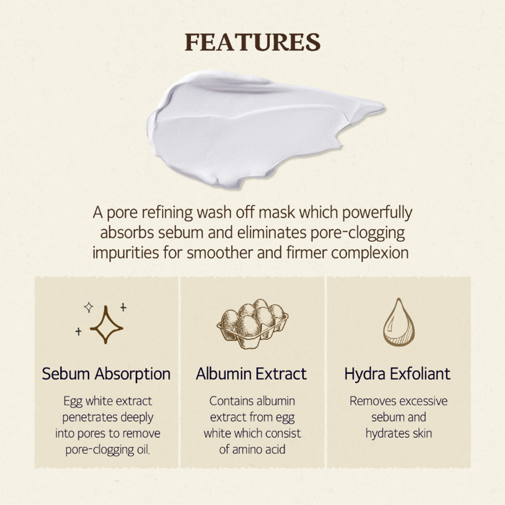 SKINFOOD Egg White Pore Mask Masker Wajah 120g Face Mask Mengangkat Sel Kulit Mati