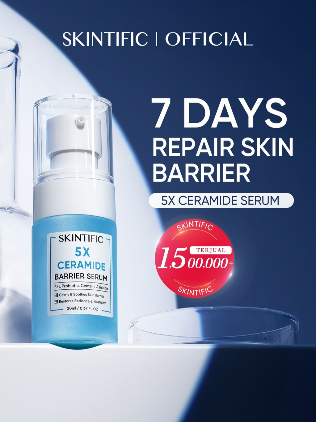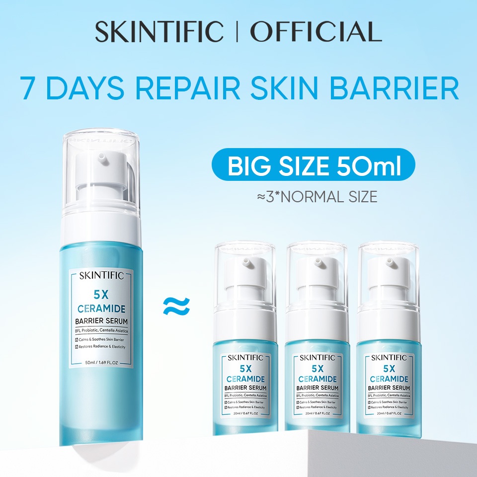 SKINTIFIC - 5X Ceramide Barrier Serum 50ml | Merawat skin barrier Serum Mencerahkan Dark Spot Tumpas Komedo anti aging anti acne Eksfoliasi Mengangkat Sel Kulit Mati Exfoliating with Ceramide Probiotik Kompleks Centella Asiatica
