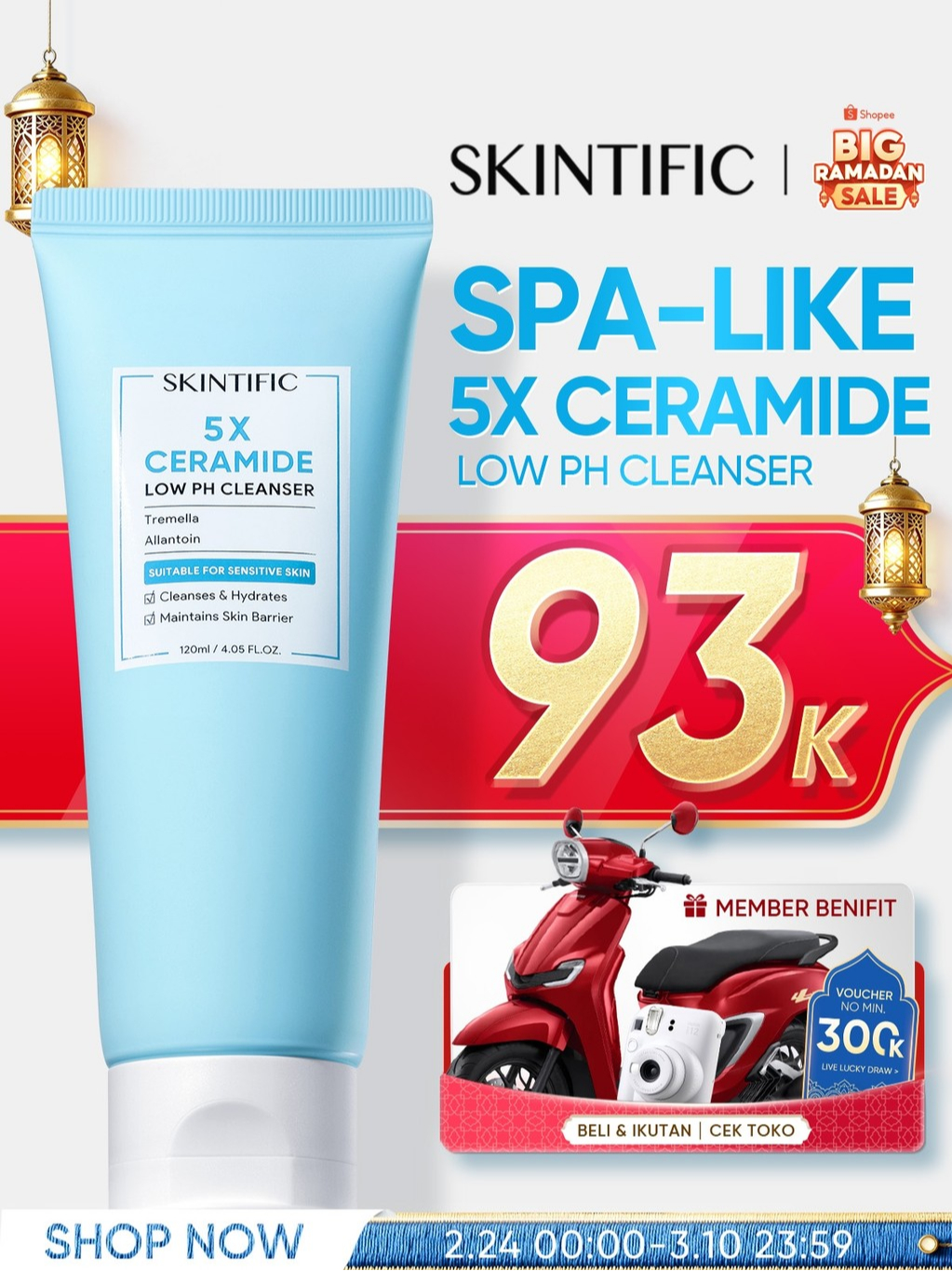 [SIZE UP!!] SKINTIFIC - Low pH Gentle Care Cleanser 120ml | 5X Ceramide Menjaga Skin Barrier Facial Wash Tidak Bikin Muka Ketarik Cleanser Face Wash Sabun Wajah Sabun Cuci Muka Untuk Semua Jenis Kulit Sensitive Redness Acne Calming Fresh Glowing Soothing
