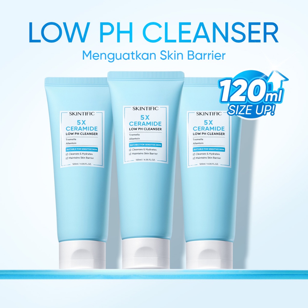 [SIZE UP!!] SKINTIFIC - Low pH Gentle Care Cleanser 120ml | 5X Ceramide Menjaga Skin Barrier Facial Wash Tidak Bikin Muka Ketarik Cleanser Face Wash Sabun Wajah Sabun Cuci Muka Untuk Semua Jenis Kulit Sensitive Redness Acne Calming Fresh Glowing Soothing