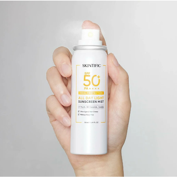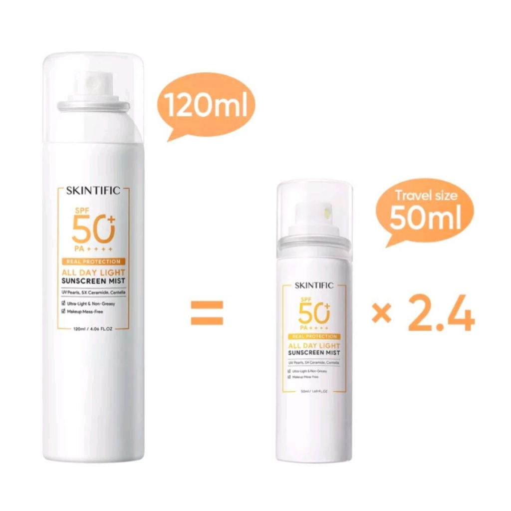 SKINTIFIC All Day Light Sunscreen Mist SPF50 PA++++ ( Sunscreen Spray Anti UV Wajah & Body Spray 50ml )