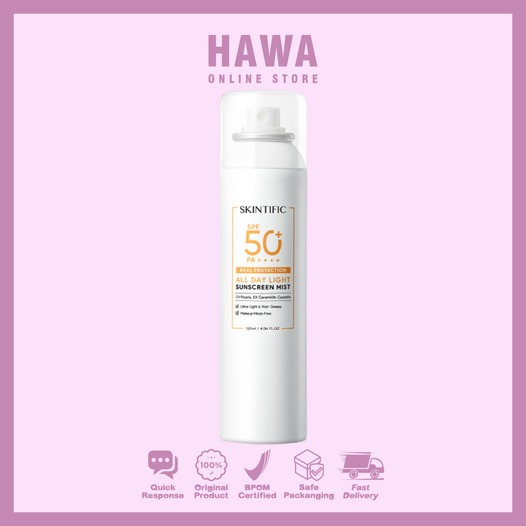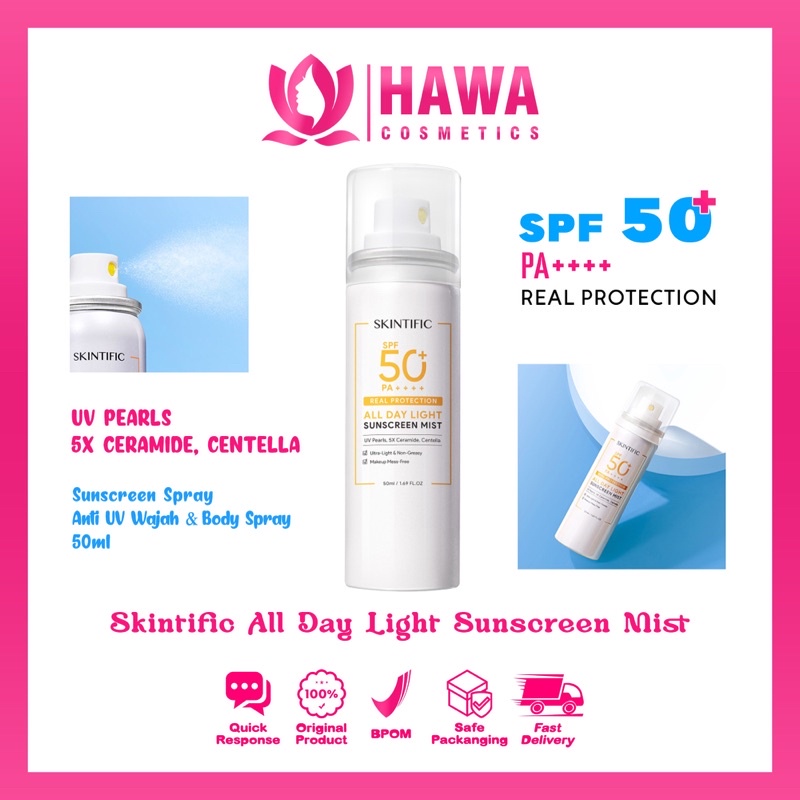 SKINTIFIC All Day Light Sunscreen Mist SPF50 PA++++ Sunscreen Spray Anti UV Wajah/Body Spray 50ml