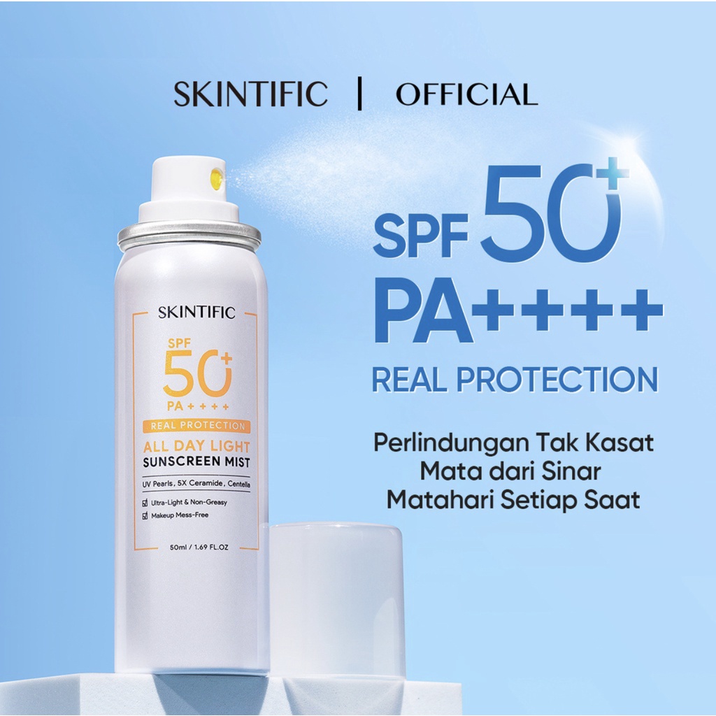 SKINTIFIC All Day Light Sunscreen Mist SPF50 PA++++ Sunscreen Spray Anti UV Wajah/Body Spray 50ml