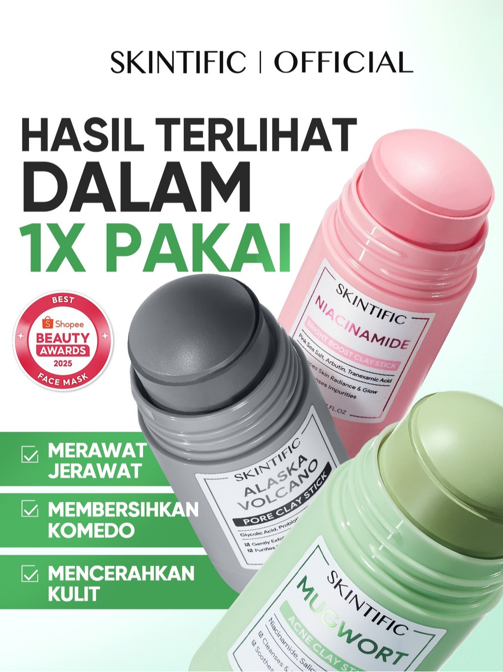 SKINTIFIC Clay Mask Stick Series /MaskerJerawat&Masker Komedo/Mugwort Acne + Niacinamide+Alaska stick/Jerawat / Brightening/ Angkat Komedo /basic skincare ,deep cleansing oil control /Cocok untuk Semua Jenis Kulit/Tekstur Ringan Tanpa Lengket