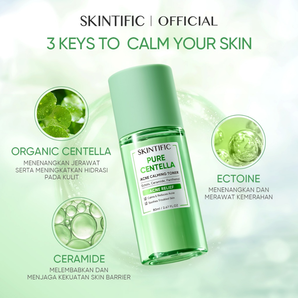 SKINTIFIC - Pure Centella Acne Calming Toner Wajah 80ml| Oil Control Acne Treatment 377 Jerawat Bekas Calm Down Redness Menjaga skin barrier meredakan kemerahan Hydrating Organic Centella Ectoin Ceramide Anti-Acne