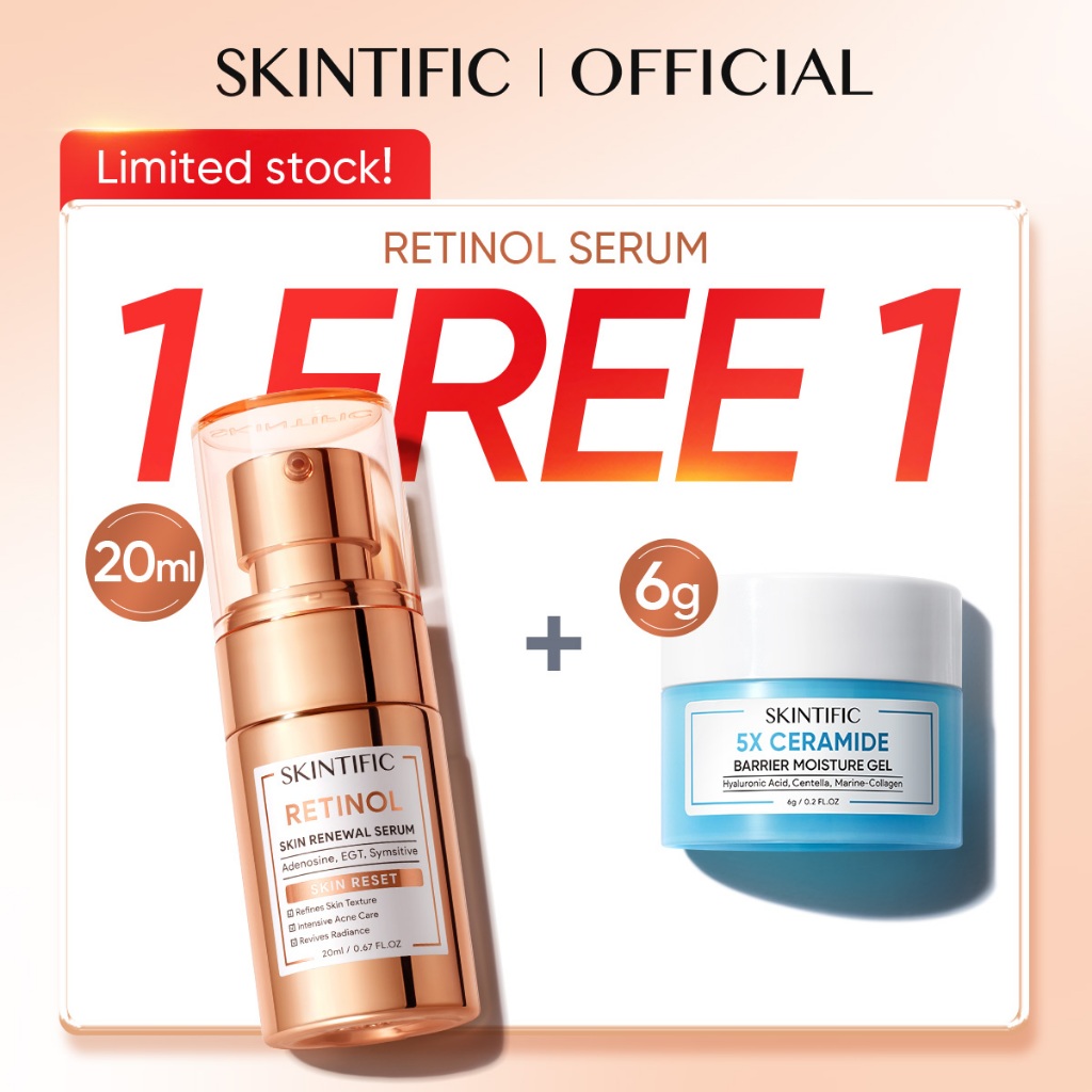 SKINTIFIC - Retinol Skin Renewal Serum wajah| Retinoid Menyamarkan Menghaluskan Tekstur Kulit Anti Aging Menyamarkan Garis Halus Meratakan Warna Kulit Merawat Kulit Berjerawat with Pure Retinol Adenosin|Smooth Acne Glowing Fade Dark Spot night serum