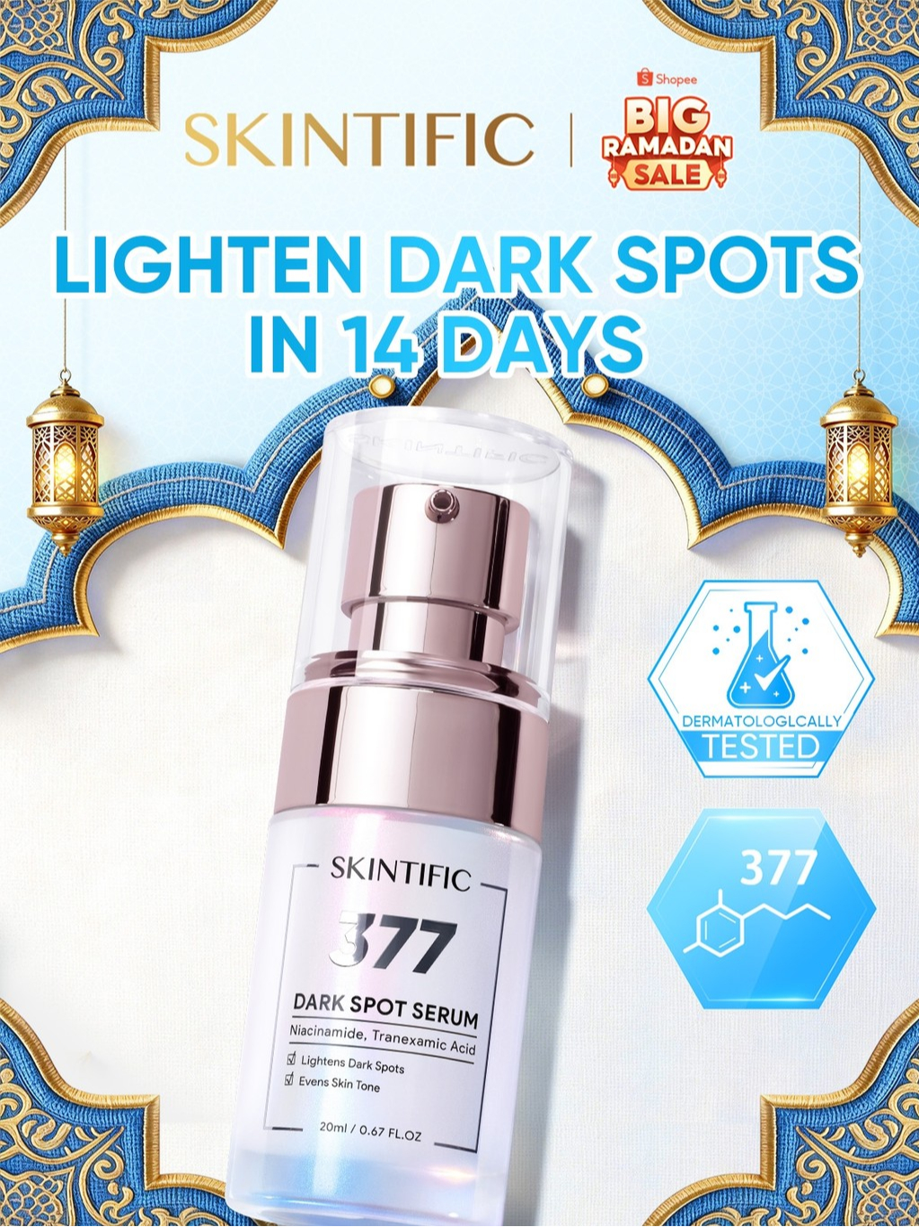 SKINTIFIC - Symwhite 377 Dark Spot Serum | Niacinamide Serum Brightening Tumpas Komedo Penghilang Dark Spots Perbaikan Bekas Jerawat cocok untuk kulit kusam, berjerawat & berminyak | Anti-Acne Eksfoliasi Mengangkat Sel Kulit Mati Exfoliating Whitening