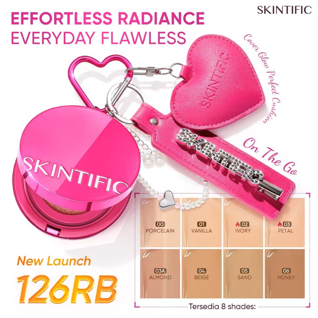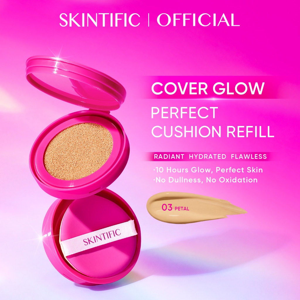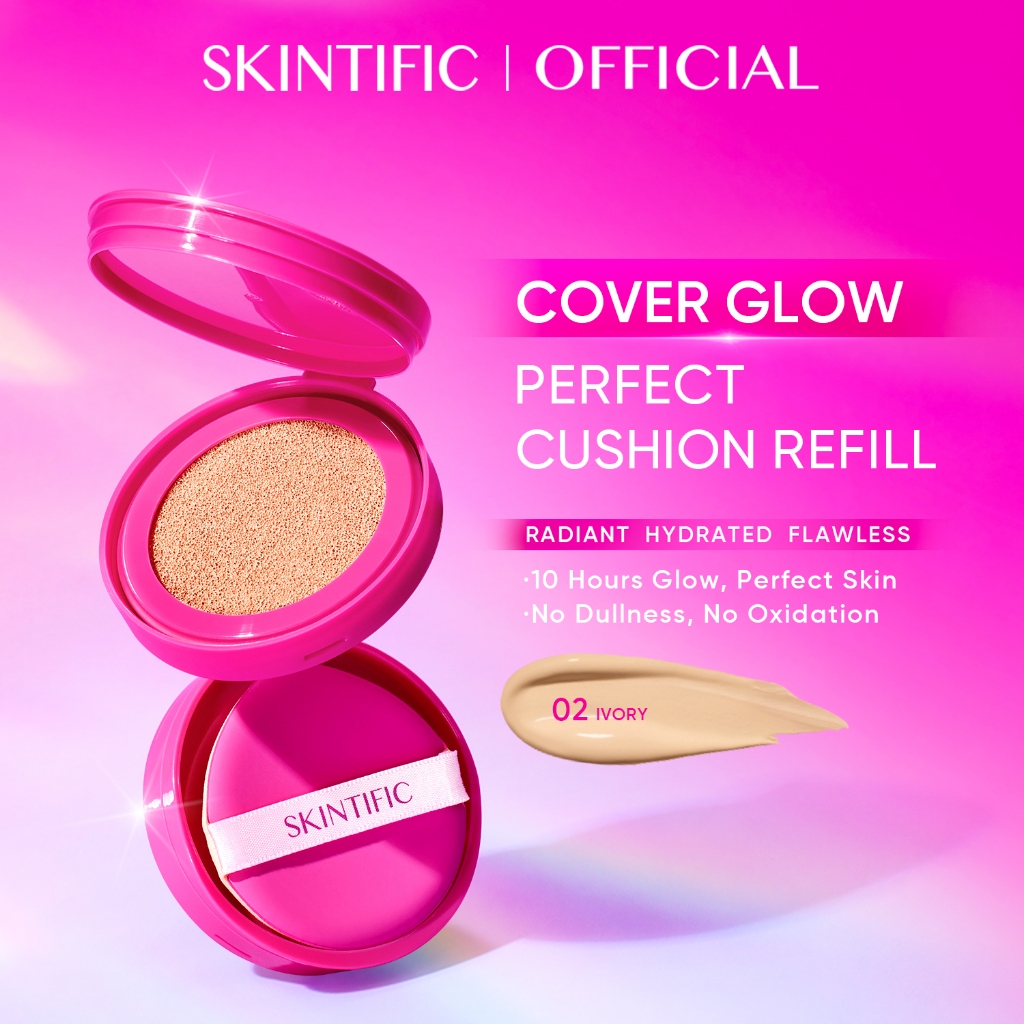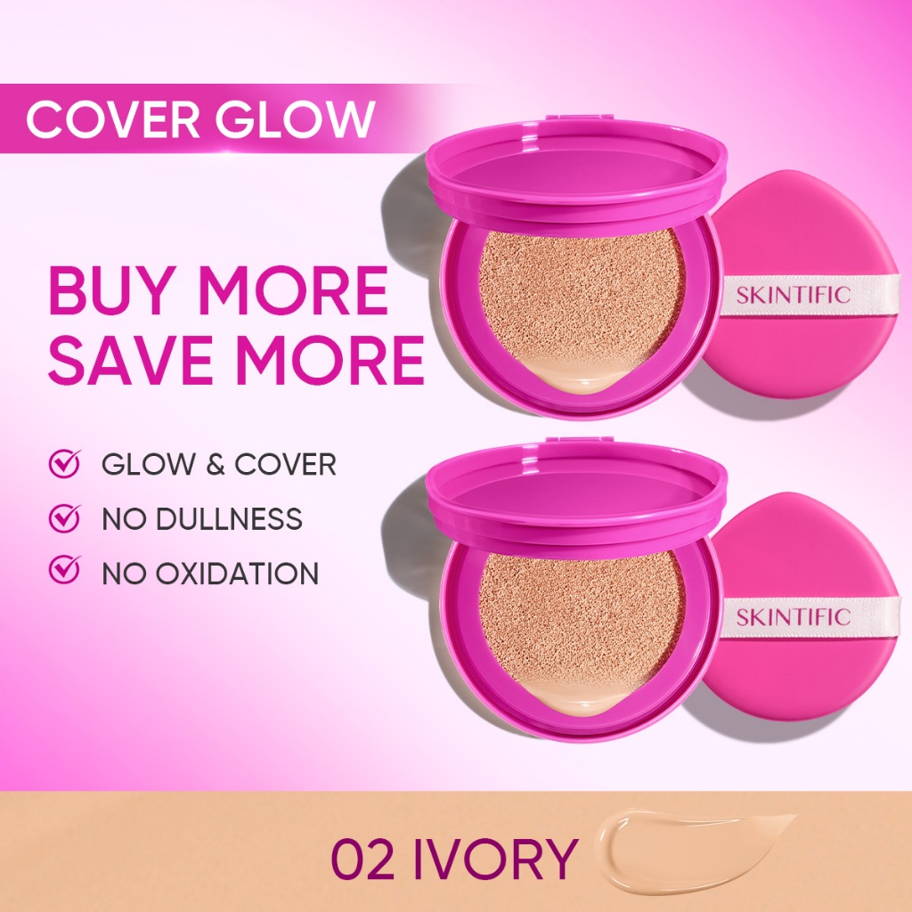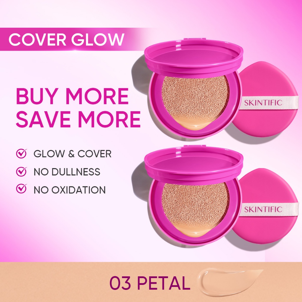 [NEW LAUNCH]SKINTIFlC - Cover Glow Perfect Pink Cushion | Smooth Poreless Radiance Glow Antioxidation Flawless Long-lasting bedak padat Foundation skin tint bb cream make up tinted refill bedak glowing full coverage skintific official stor